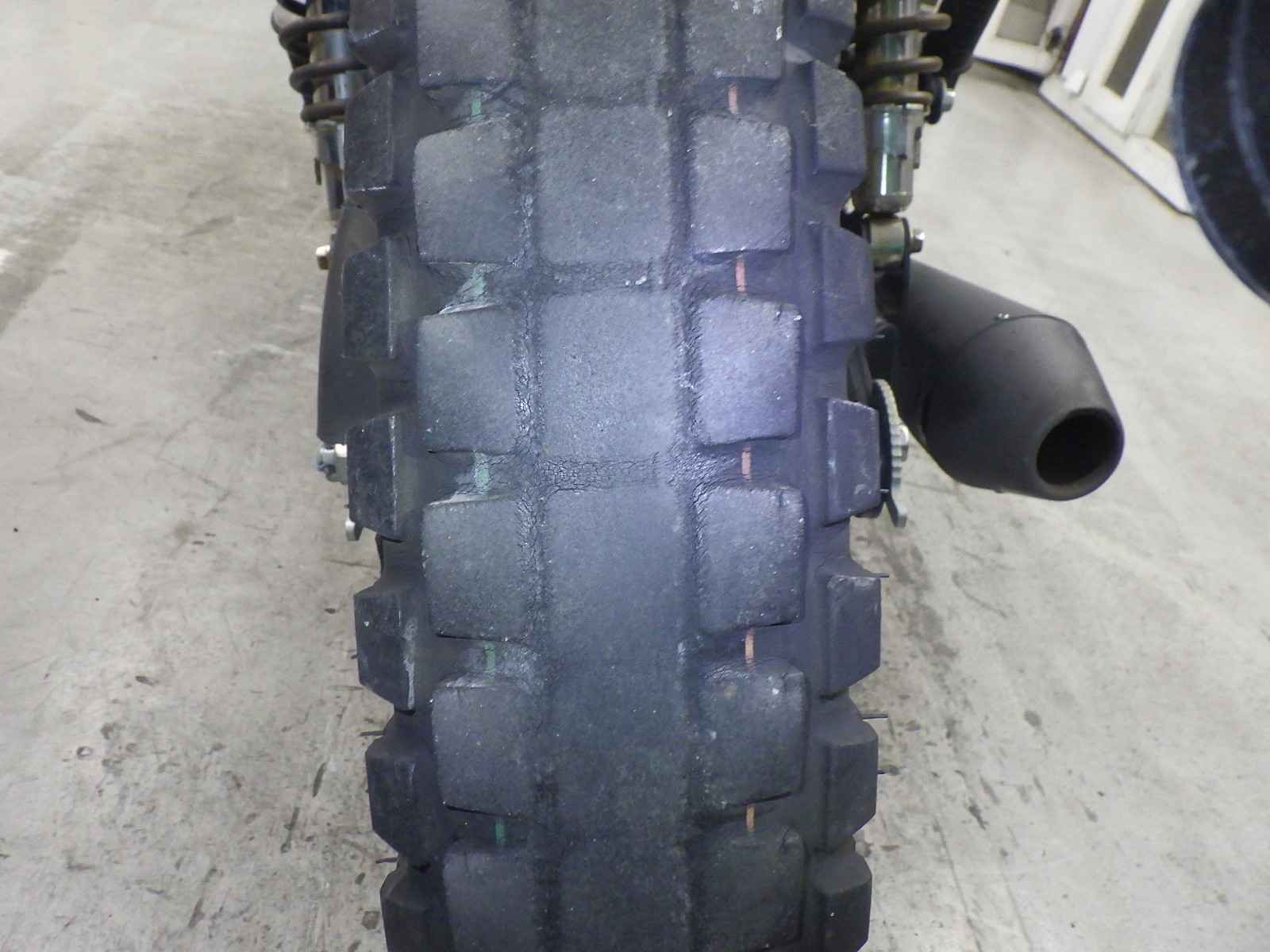 Задняя покрышка: Снижение давления в шине, Трещина требует замены.