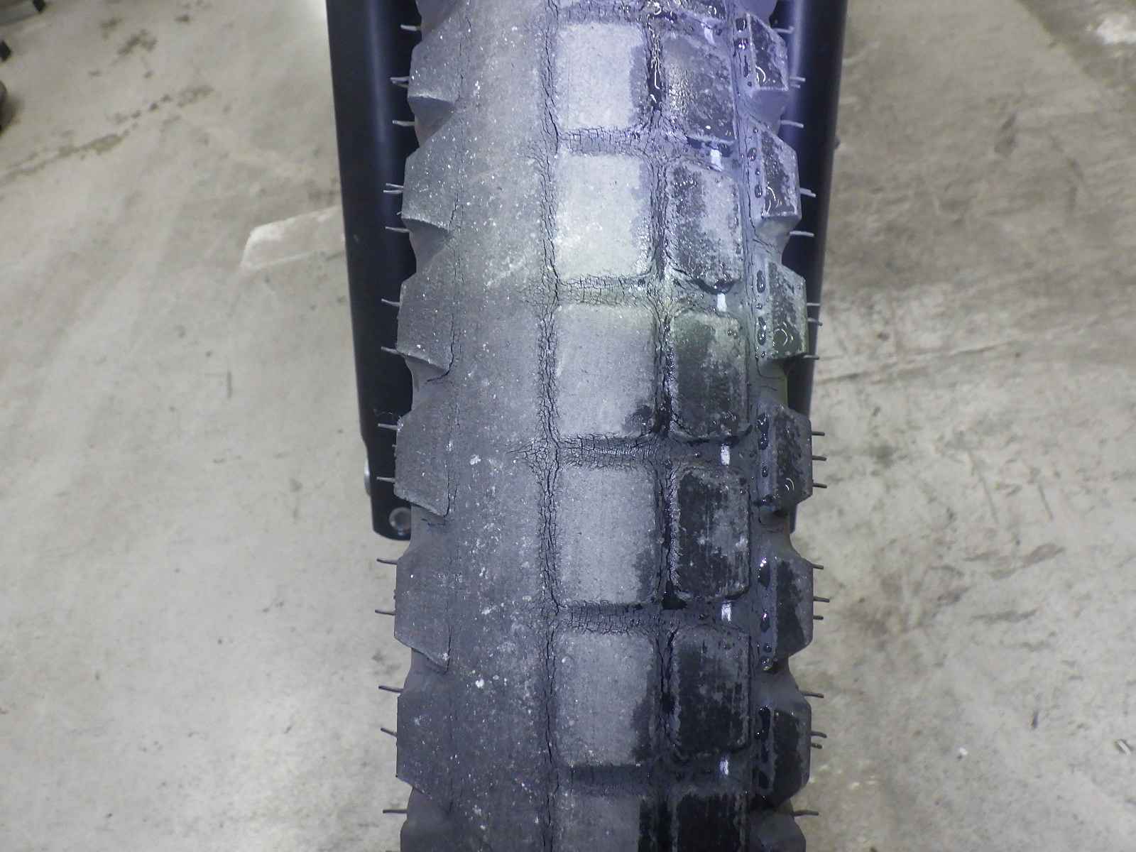 Передняя покрышка: Снижение давления в шине, Трещина требует замены.