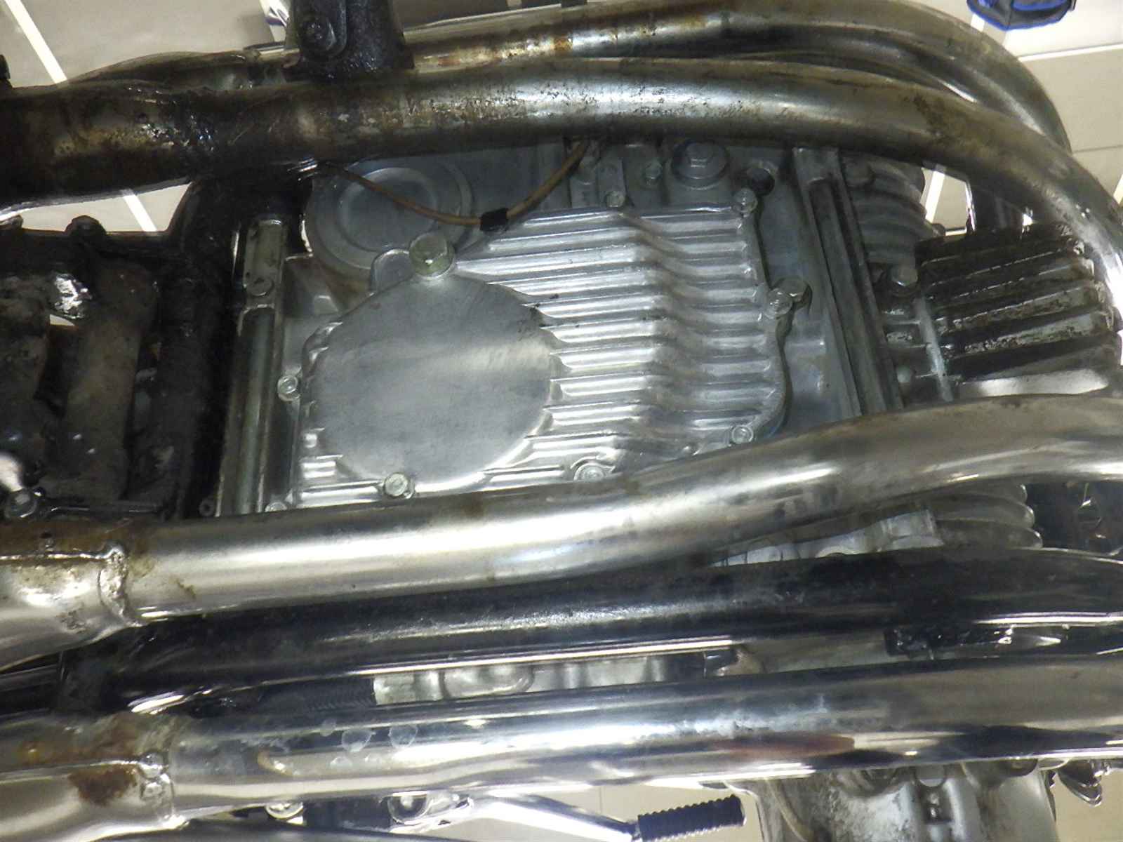 エンジン始動確認済。左クランクケース割れ修正不良。