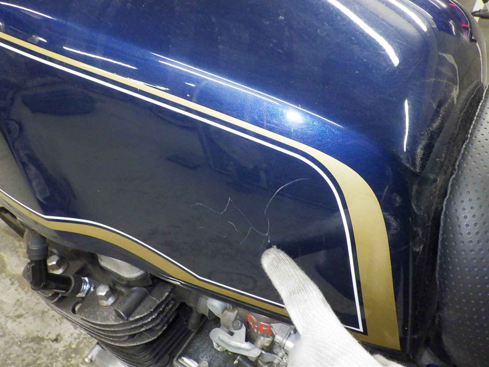Бензобак: Вмятина на баке Уровень 2, Вся краска, Внутренняя окисление