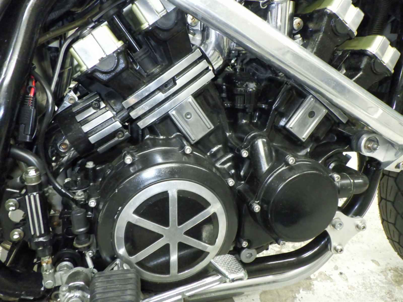 Двигатель: Окисление двигателя Уровень 3, облезлая краска, Частичная потеря покраски, Неисправность в системе выдува, Выпускной трубы в одну деталь, Недостаток нижних плавников, Незначительно