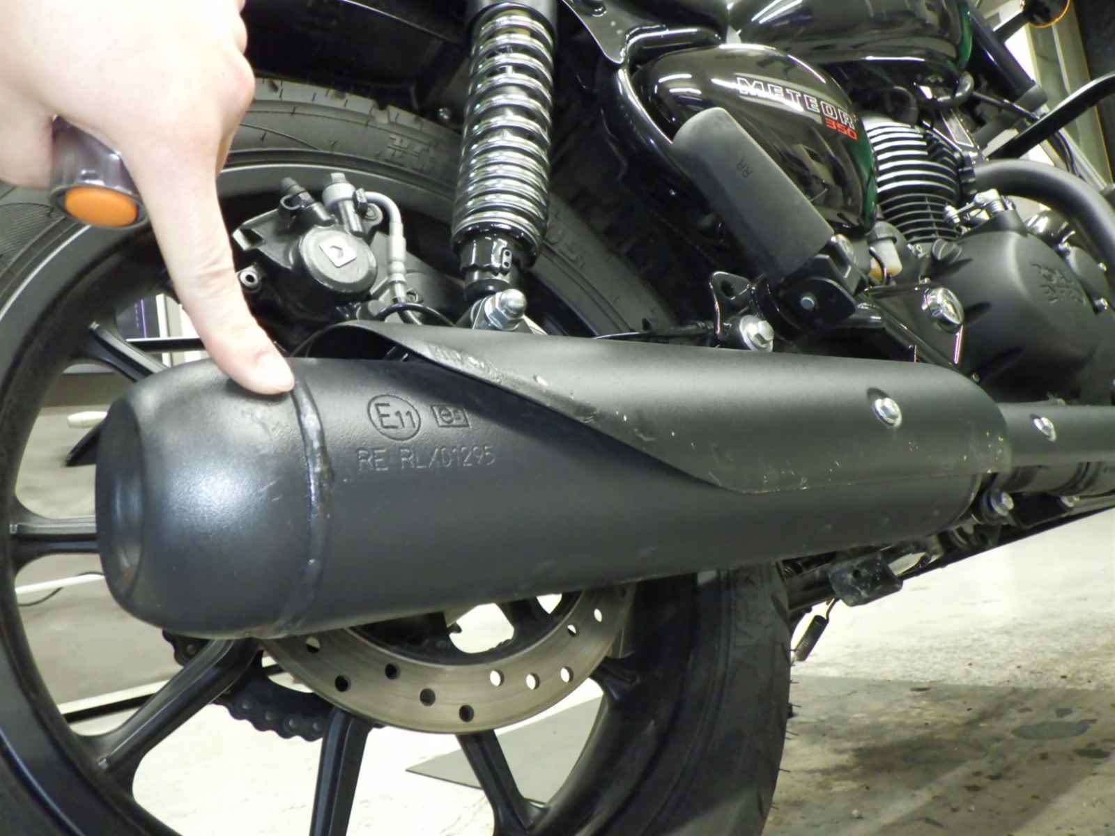 Выхлопная труба: Вмятина на выхлопной трубе, Незначительно, Недочет покрытия Уровень 3, Вмятина