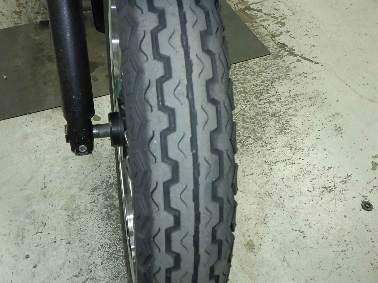 Передняя покрышка: Снижение давления в шине, Трещина требует замены.