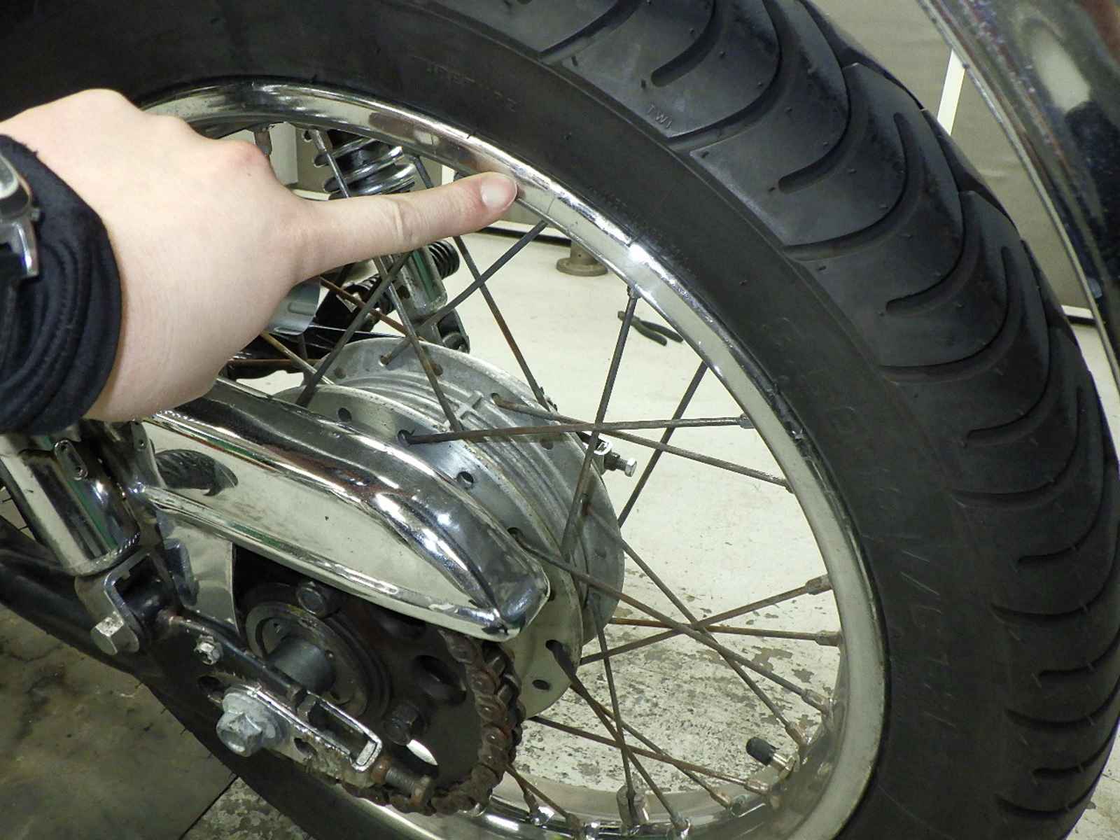 Заднее колесо: Окисление на колесе Уровень 3, Недостаток Уровень 3, Вмятина