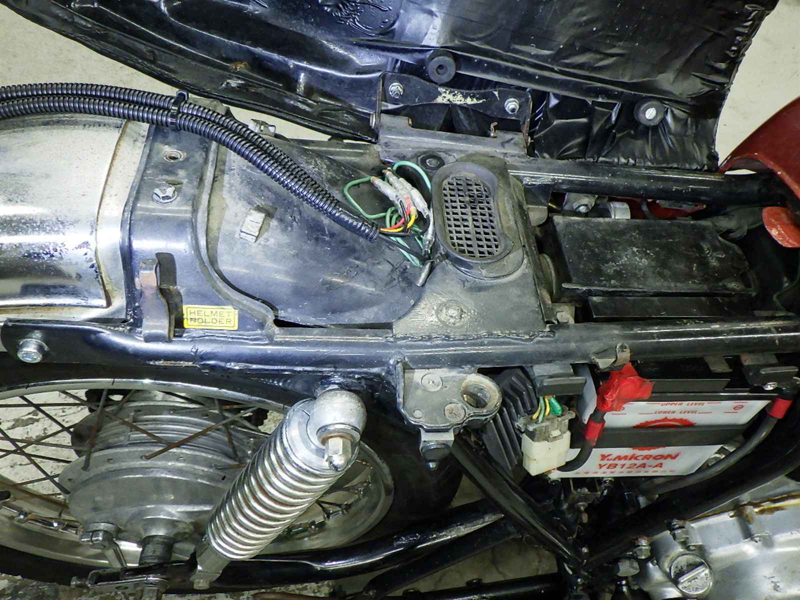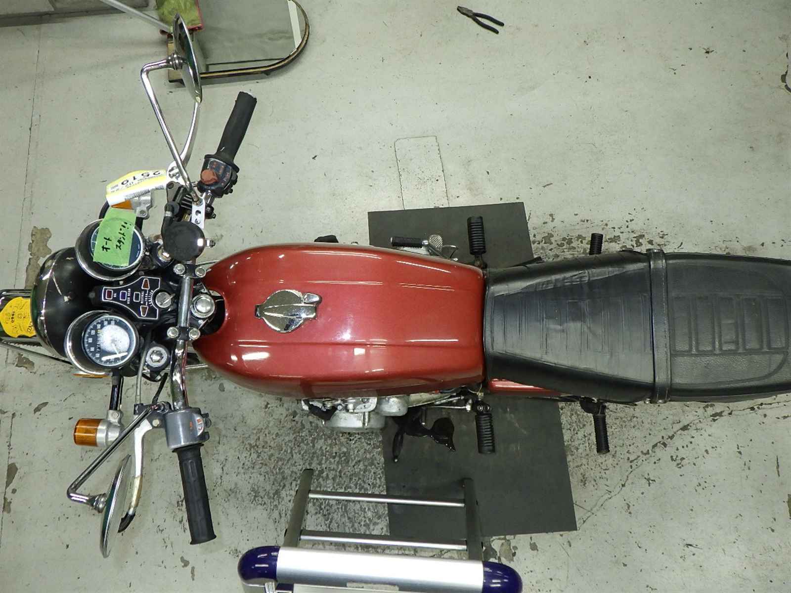メーター開封跡あり。前足回りねじれ。配線加工。全体キズ、サビ大、変色。オールペン塗装ムラ。クラッチ硬い。
