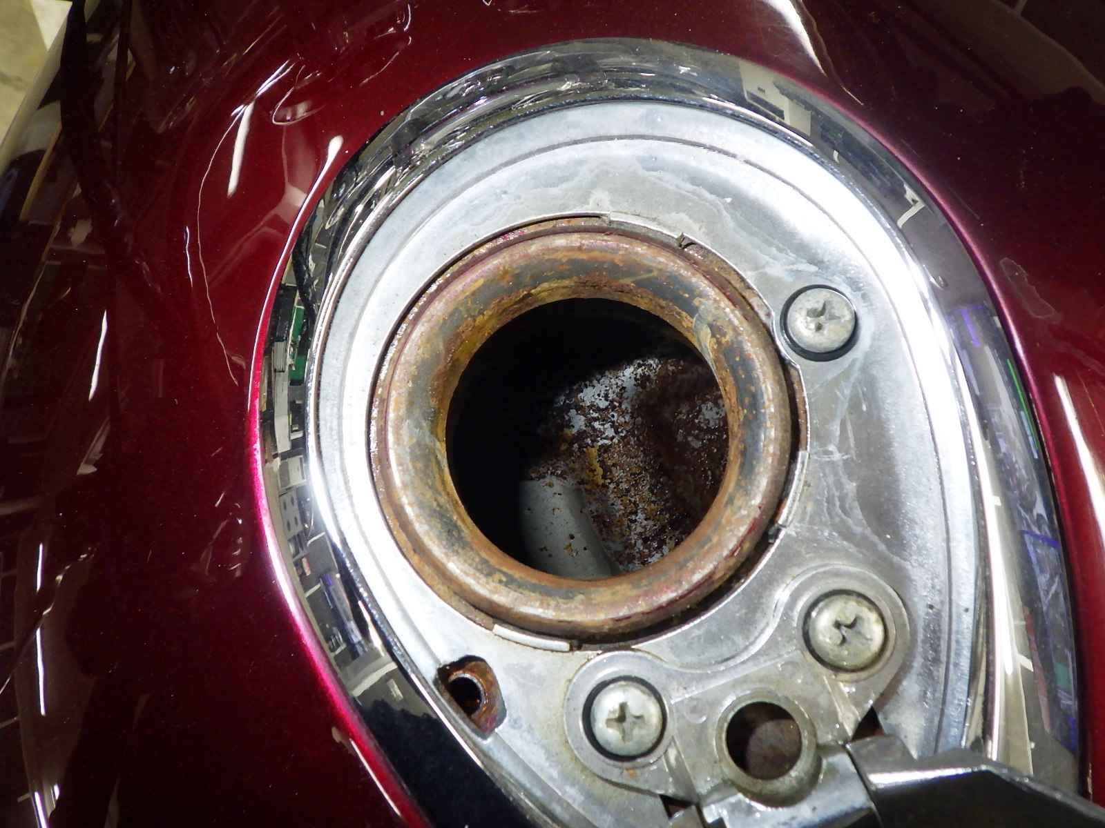 Бензобак: Вмятина на баке Уровень 3, Недостаток Уровень 3, Вся краска, Внутренняя окисление Уровень 3
