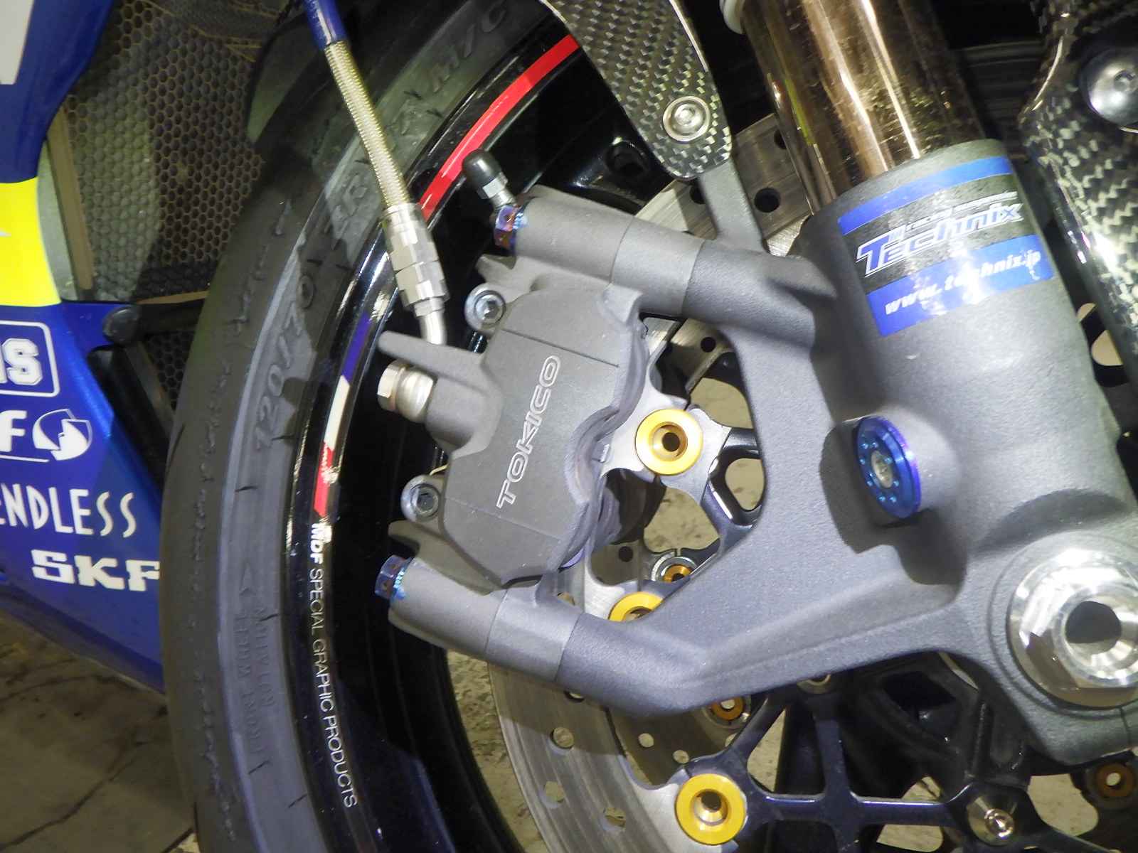 スライダー付き。チェーンアジャスター社外。タンク内確認出来ず。外装社外。カウルズレ。