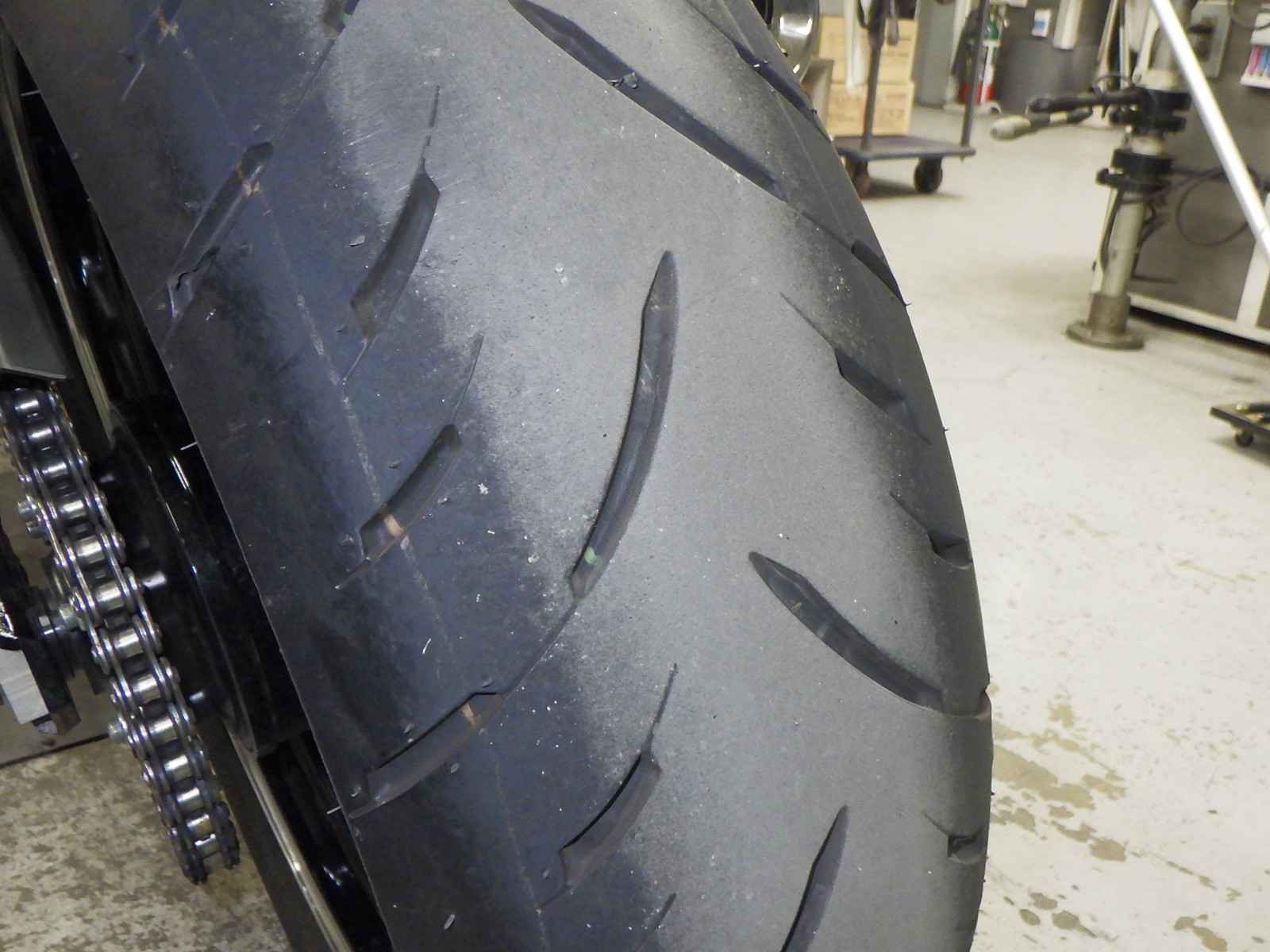 Передняя покрышка: Трещина на шине, Незначительно