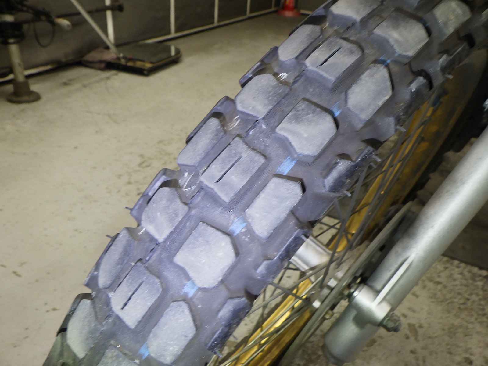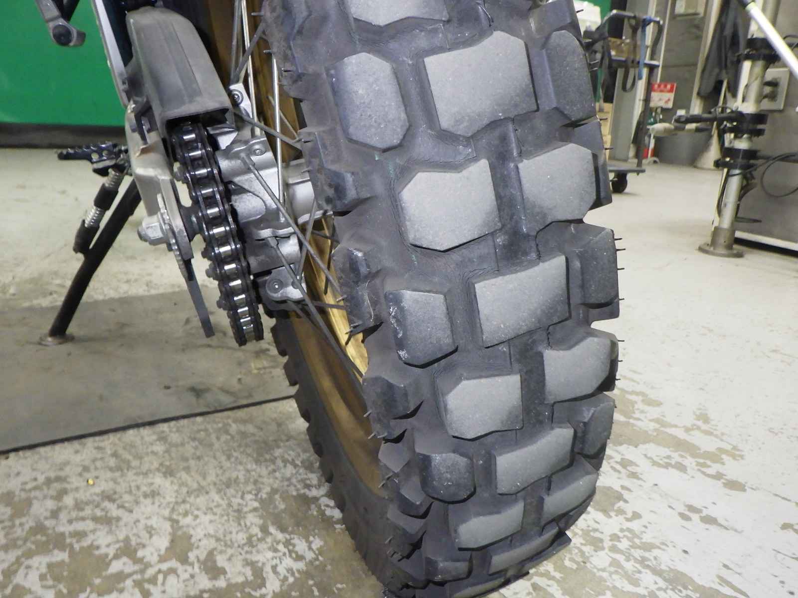 Задняя покрышка: Снижение давления в шине, Трещина требует замены.