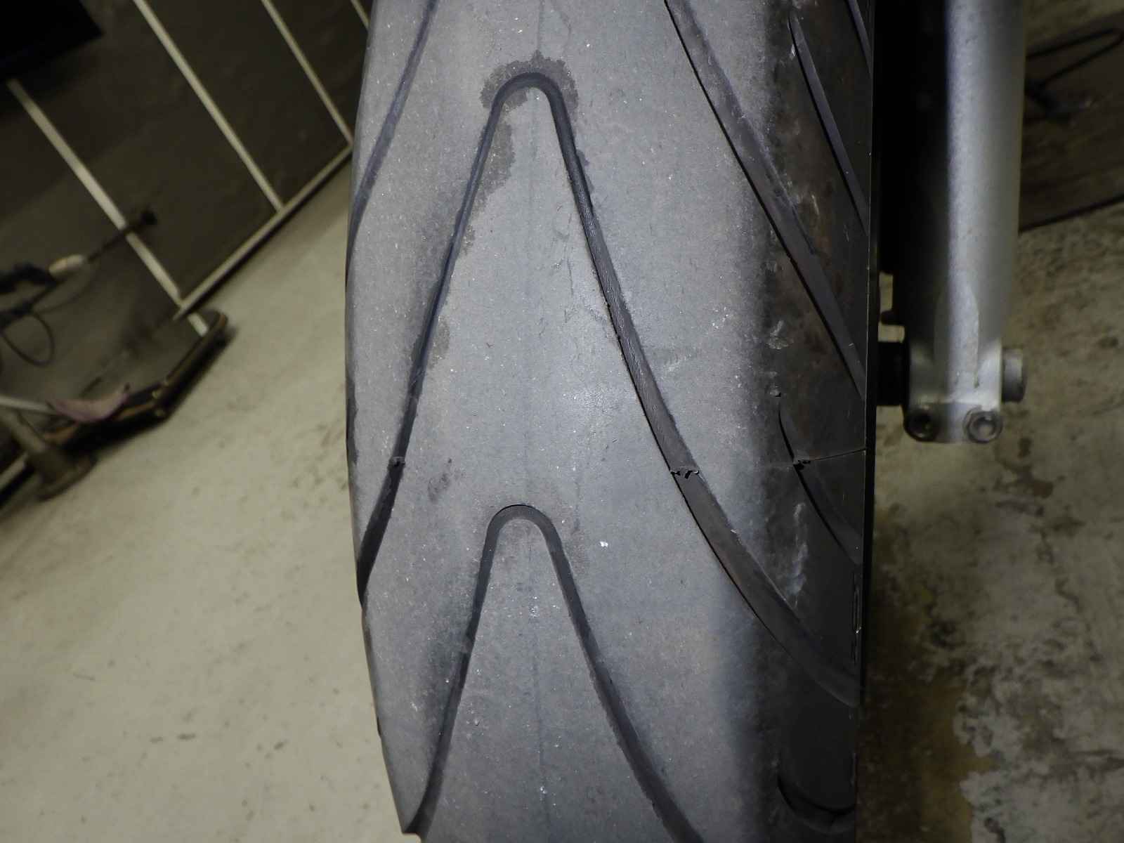 Передняя покрышка: Снижение давления в шине, Трещина