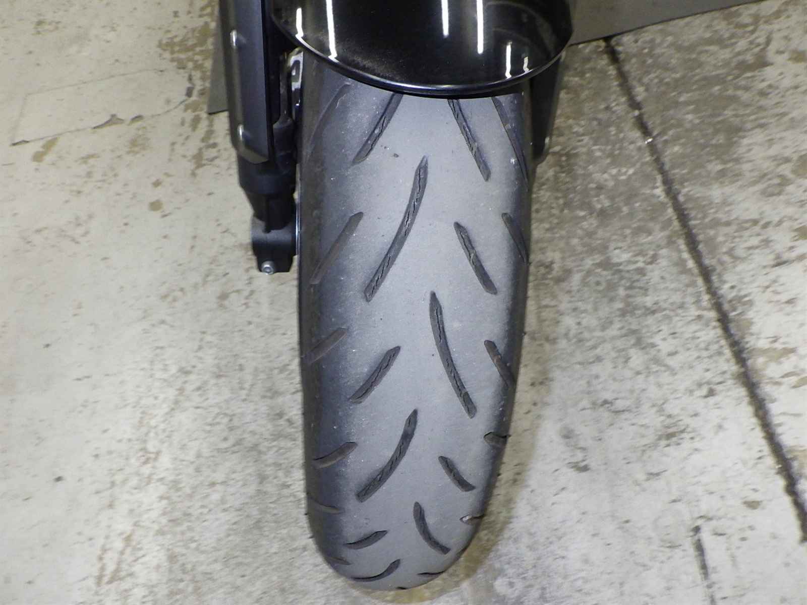 Передняя покрышка: Трещина на шине, требуется замена.
