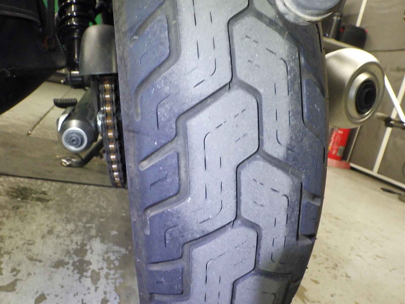 Передняя покрышка: Снижение давления в шине, Трещина требует замены.