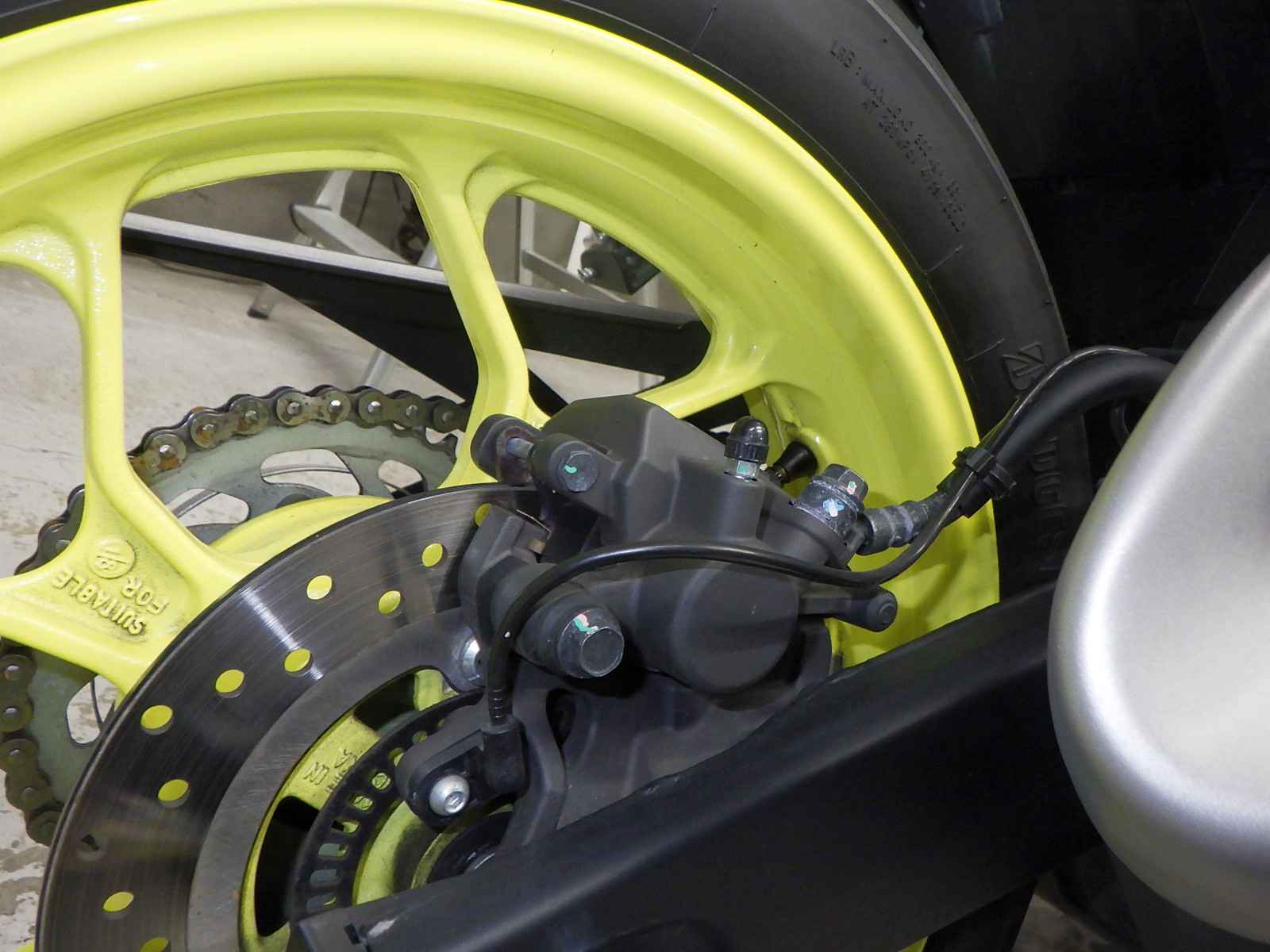 Заднее колесо: Краска колеса облупилась из-за ржавчины., Незначительно