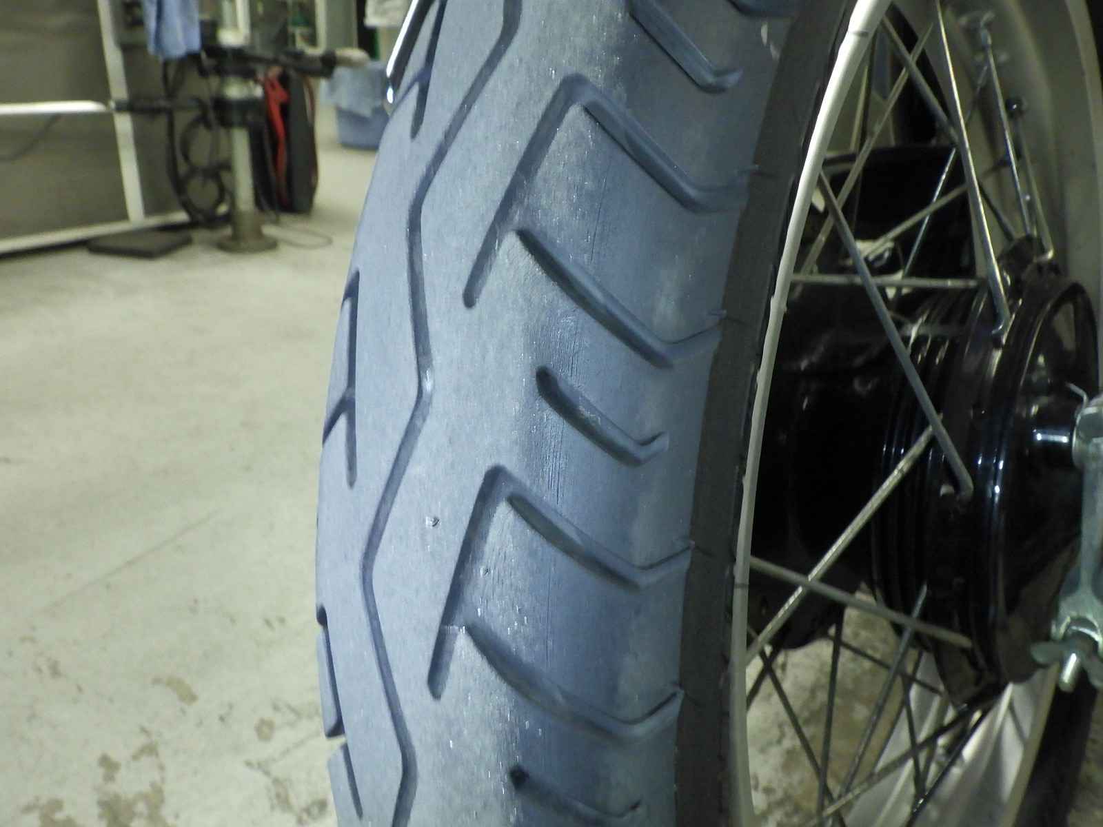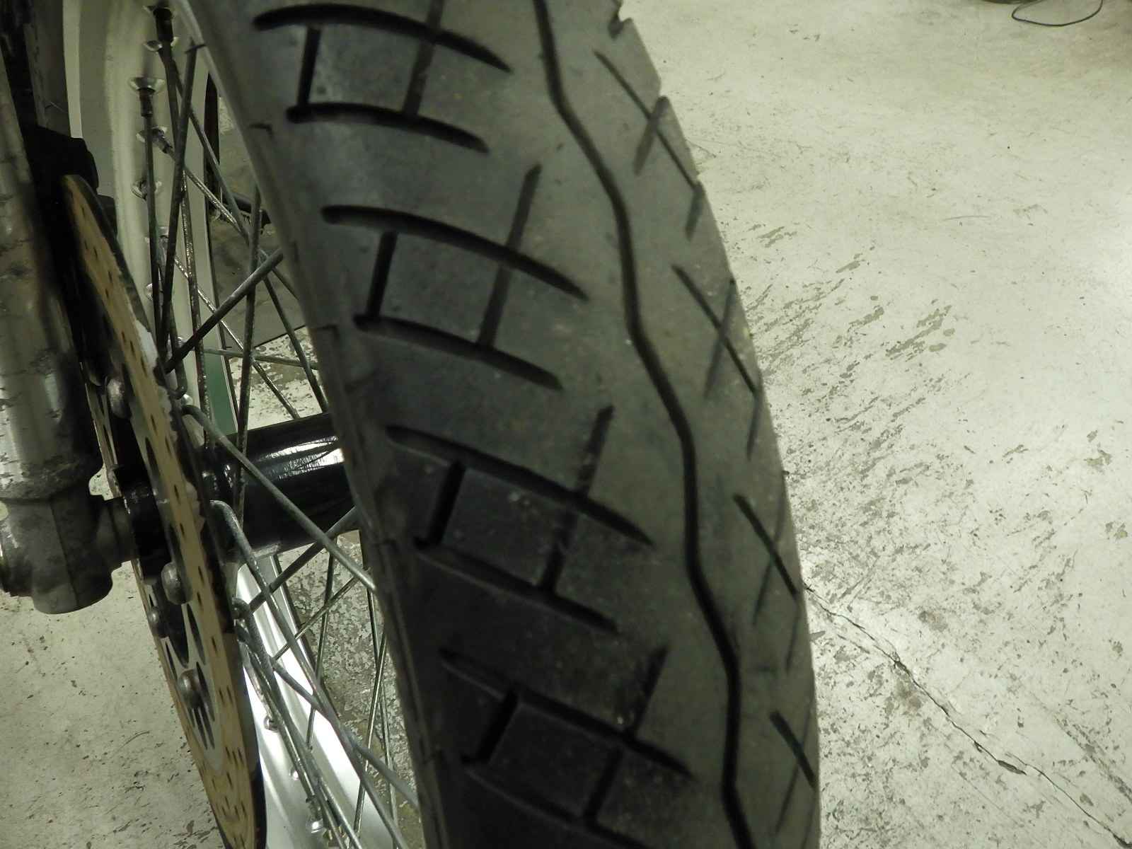 Передняя покрышка: Трещина на шине, требуется замена.