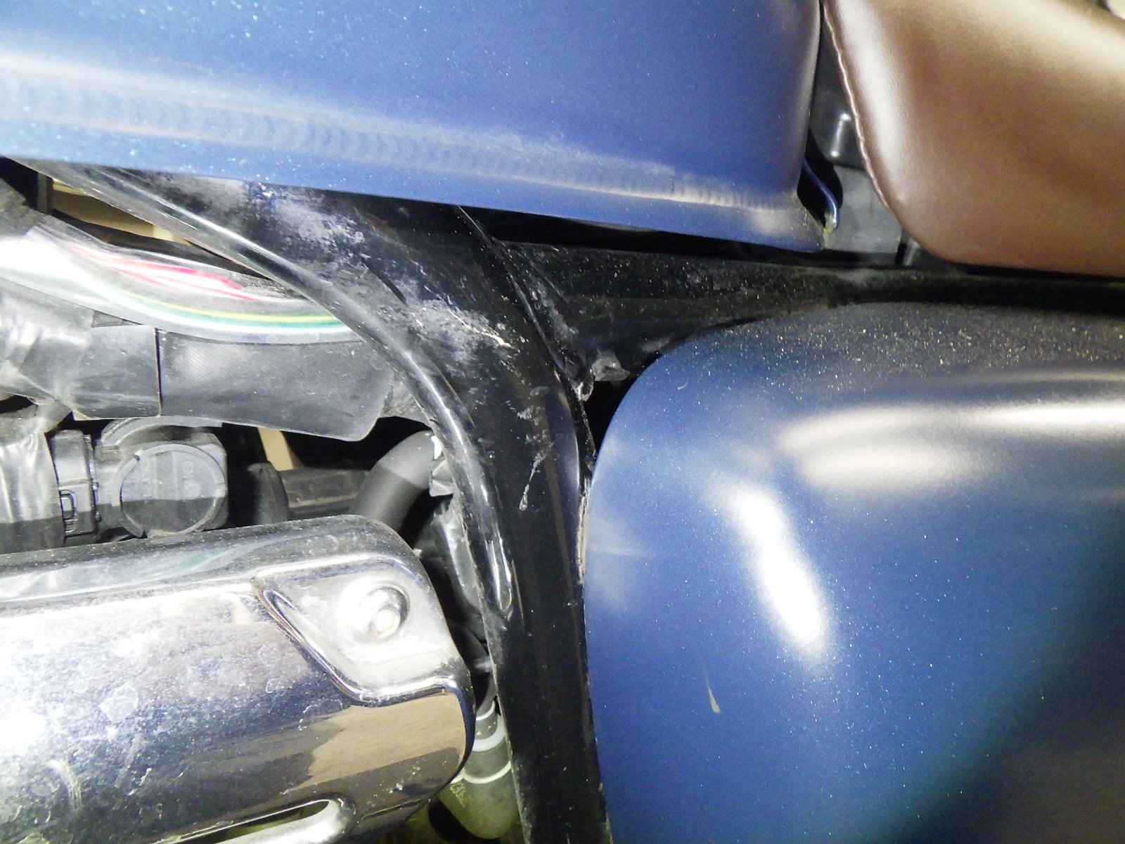 Нижняя труба рамы: Окисление на нижней трубе, покрытой краской.