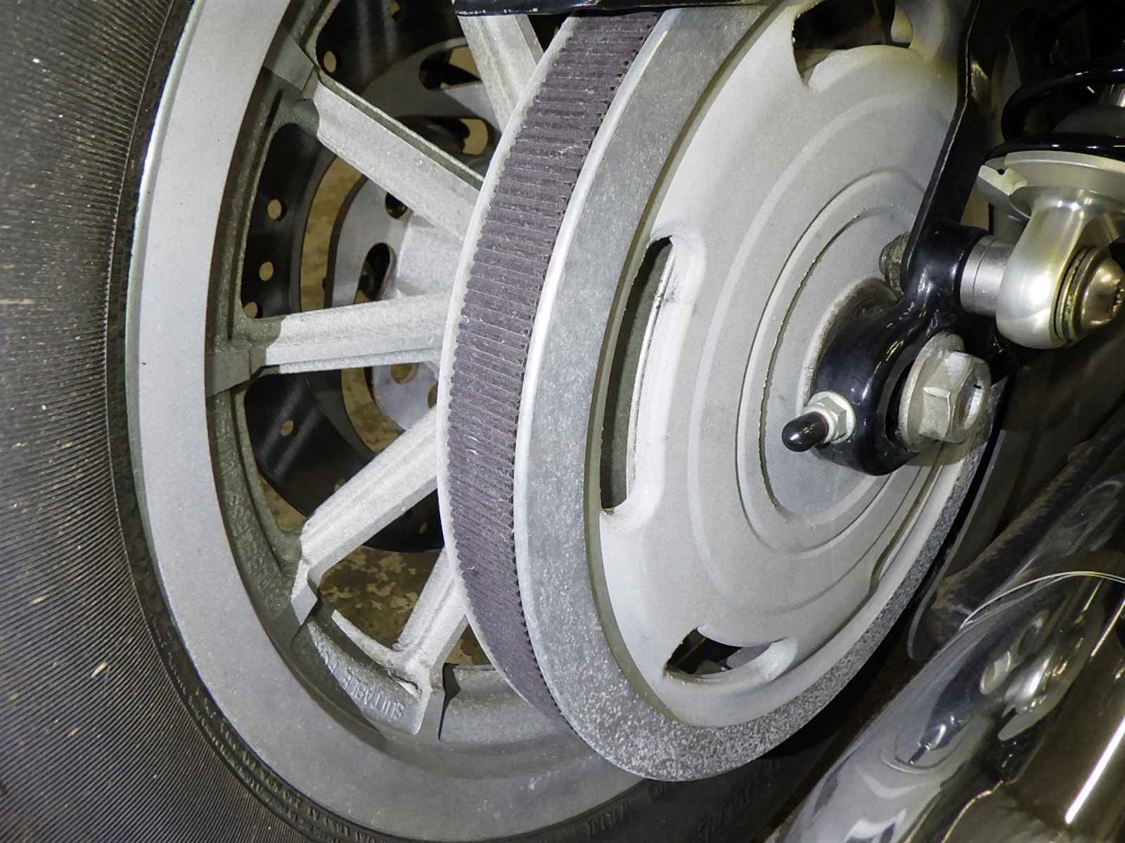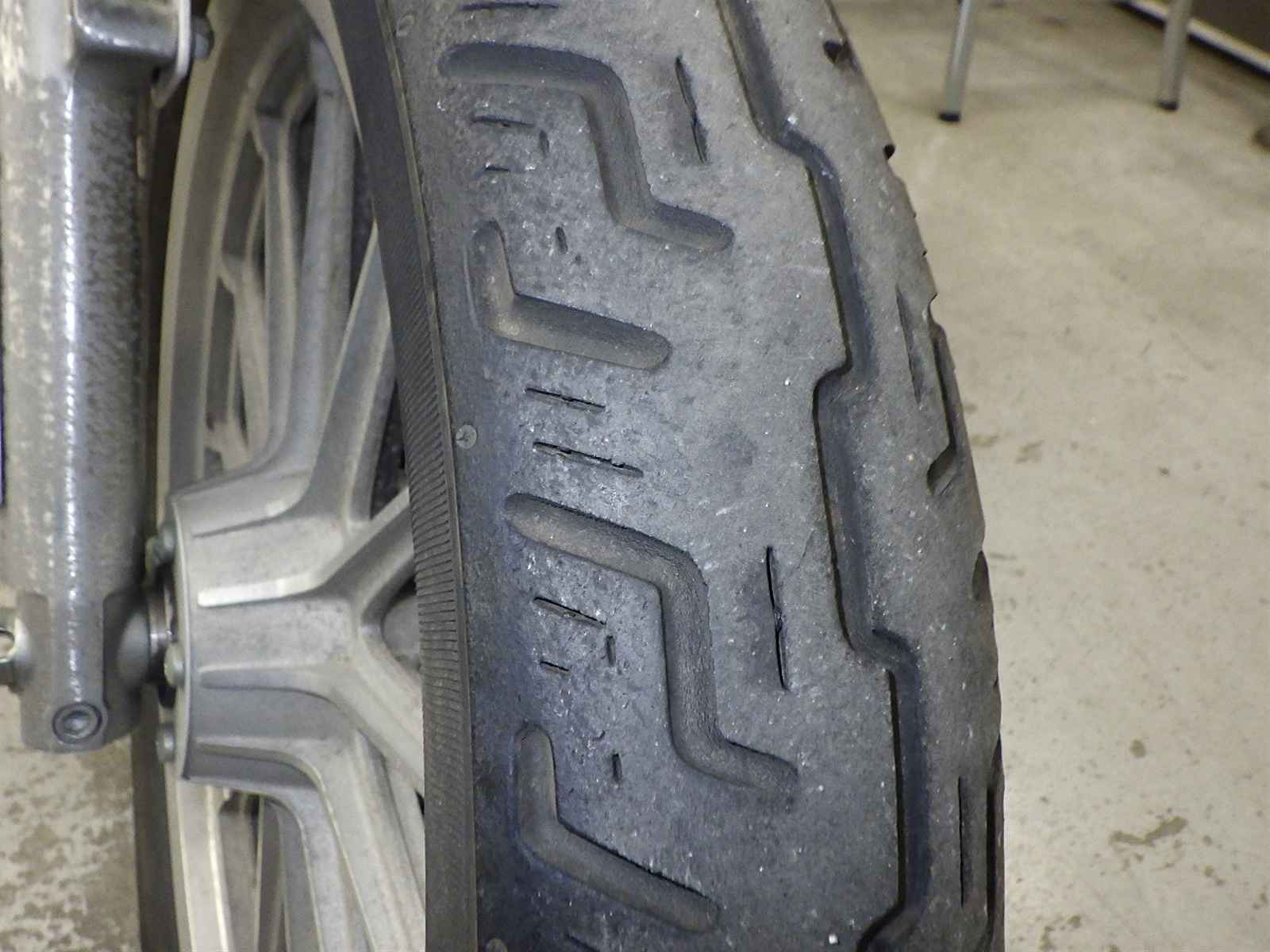 Передняя покрышка: Трещина на шине, требуется замена.