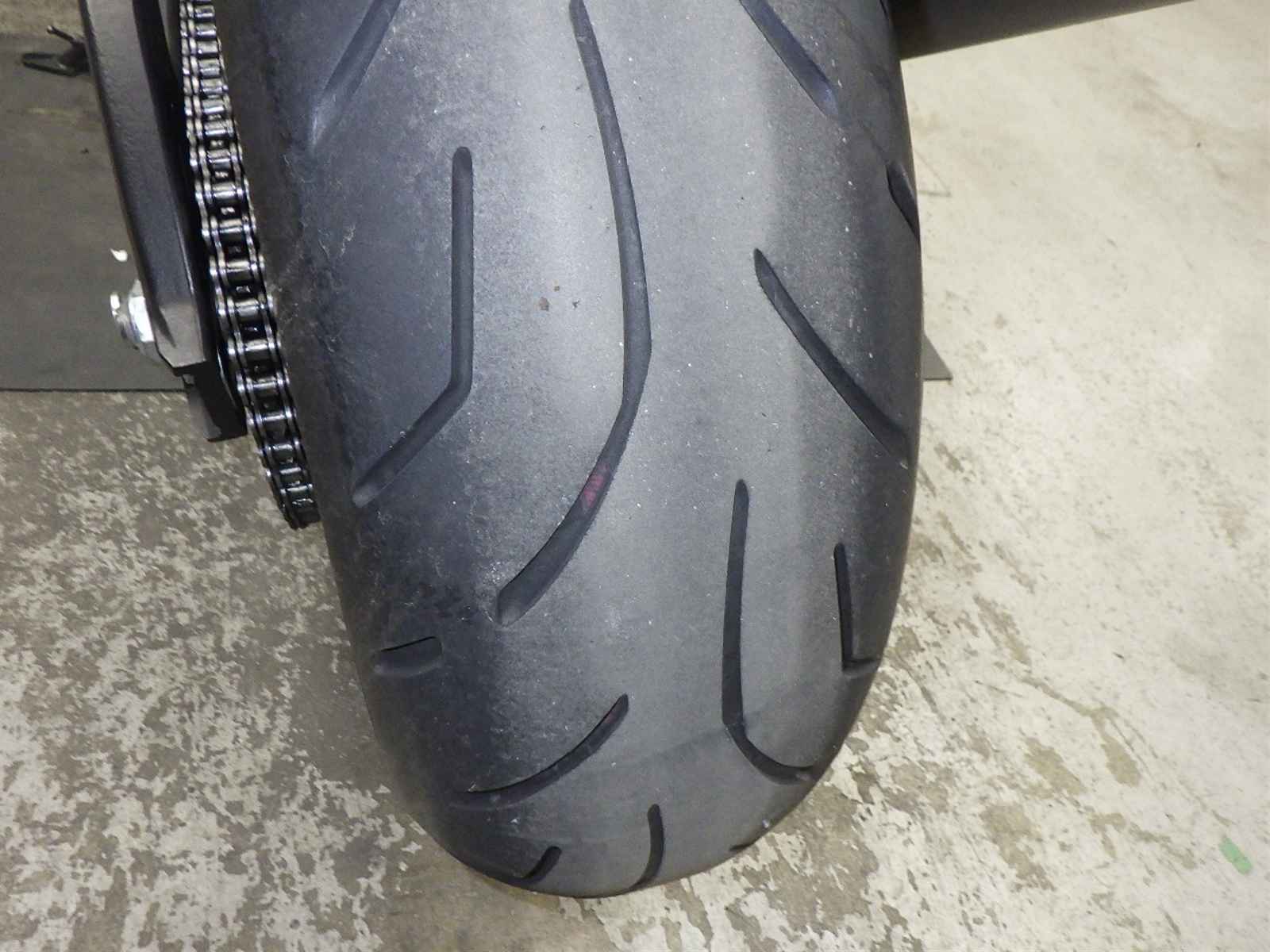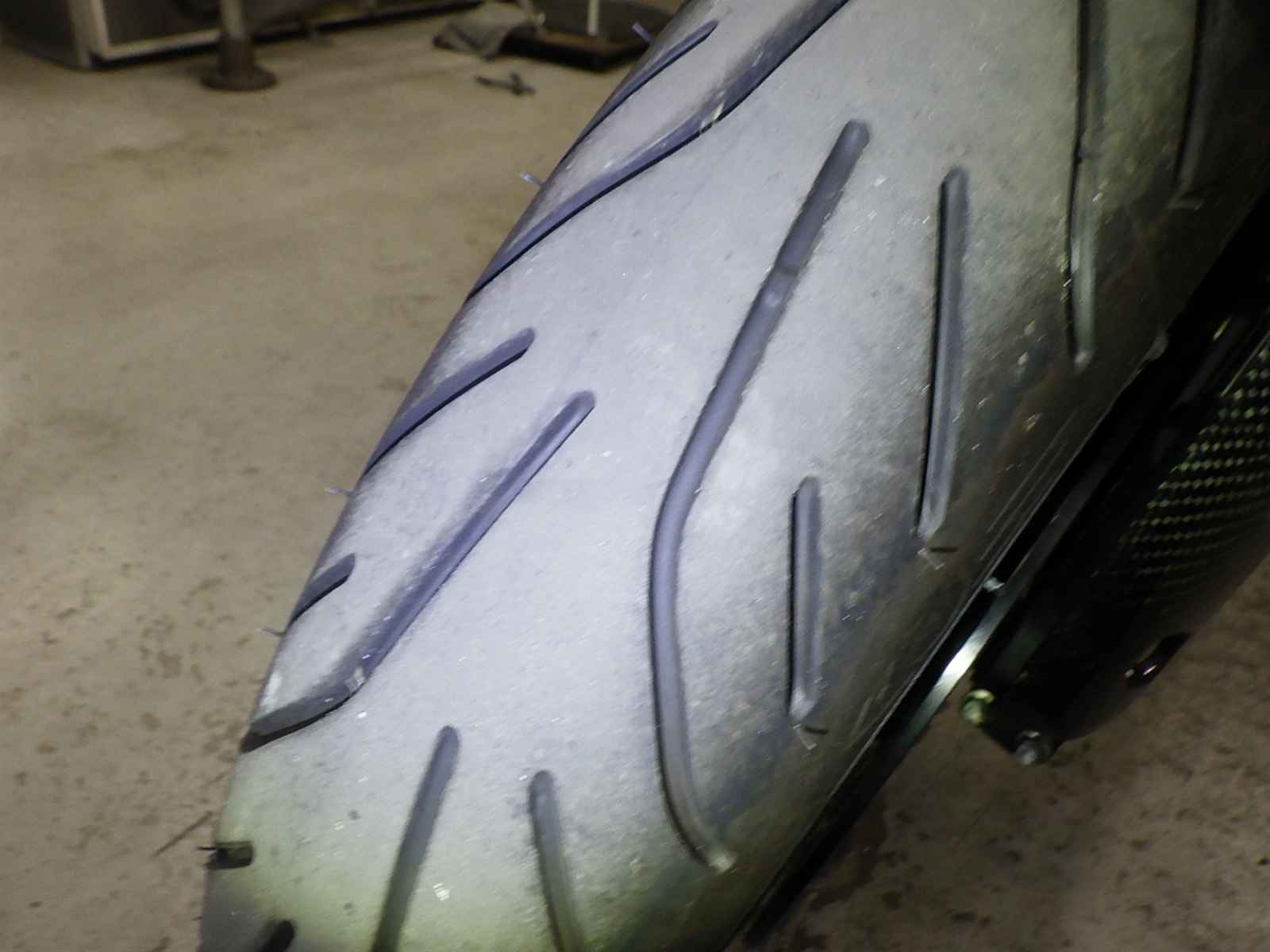 Задняя покрышка: Снижение давления в шине, Трещина требует замены.