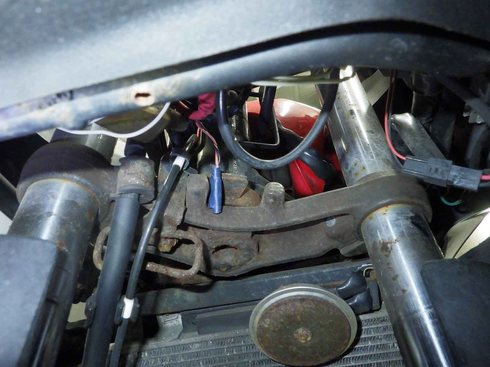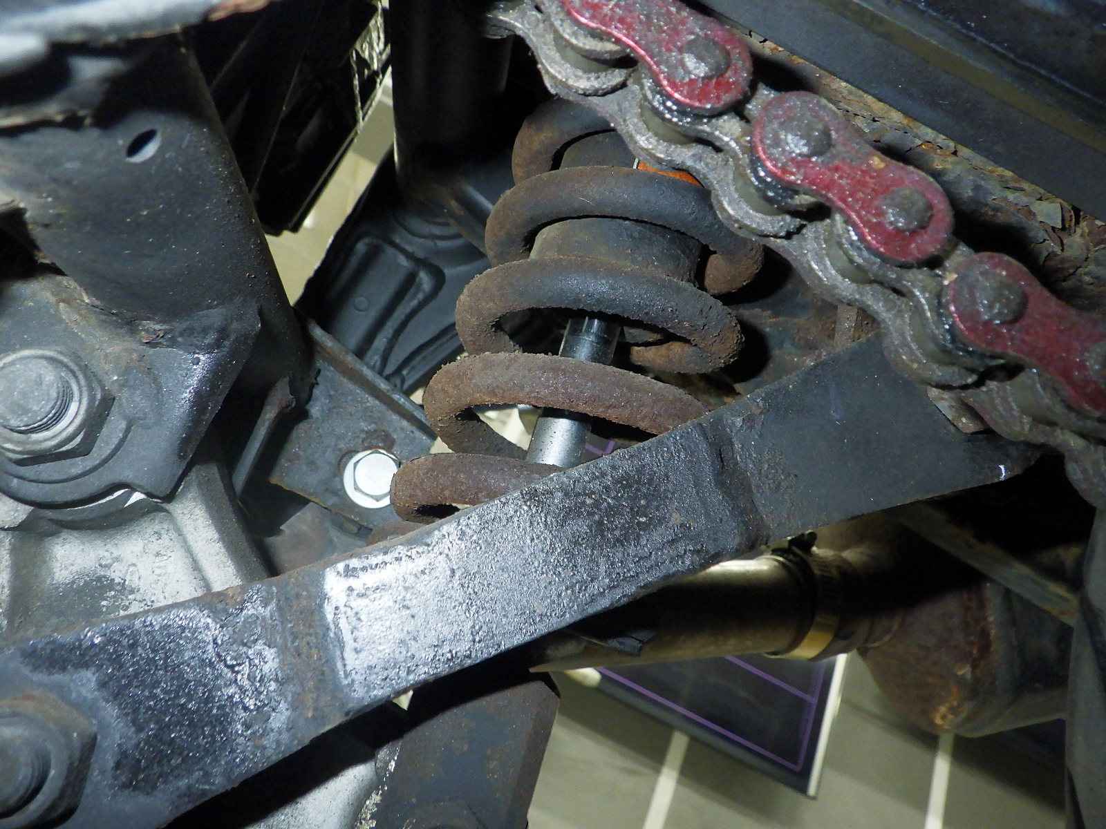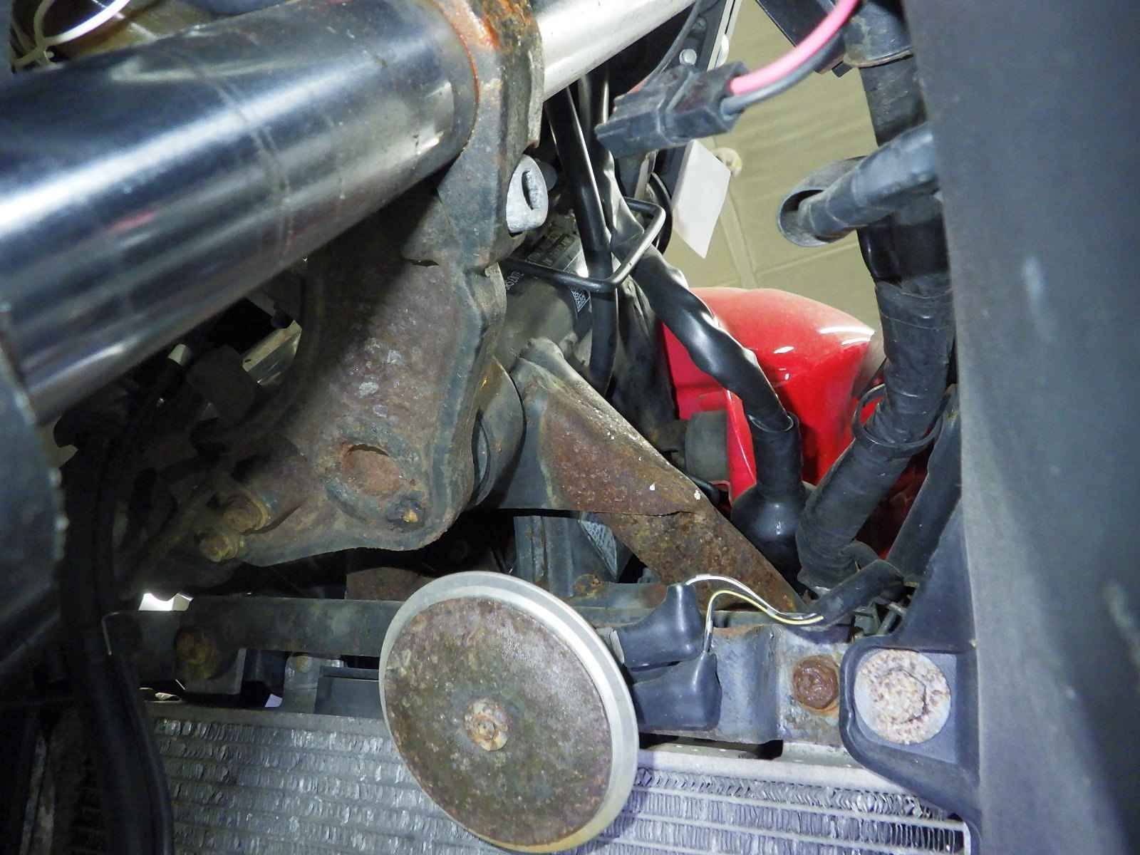 エンジン型式サビ不鮮明。電装系不良。前足回りねじれ大。全体サビ大、キズ多、変色大。