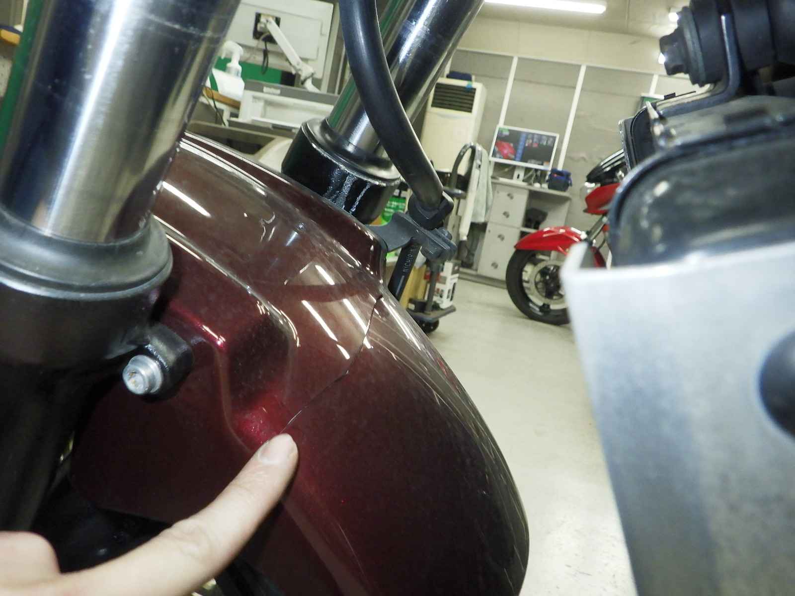 Передняя покрышка: Снижение давления в шине, Трещина