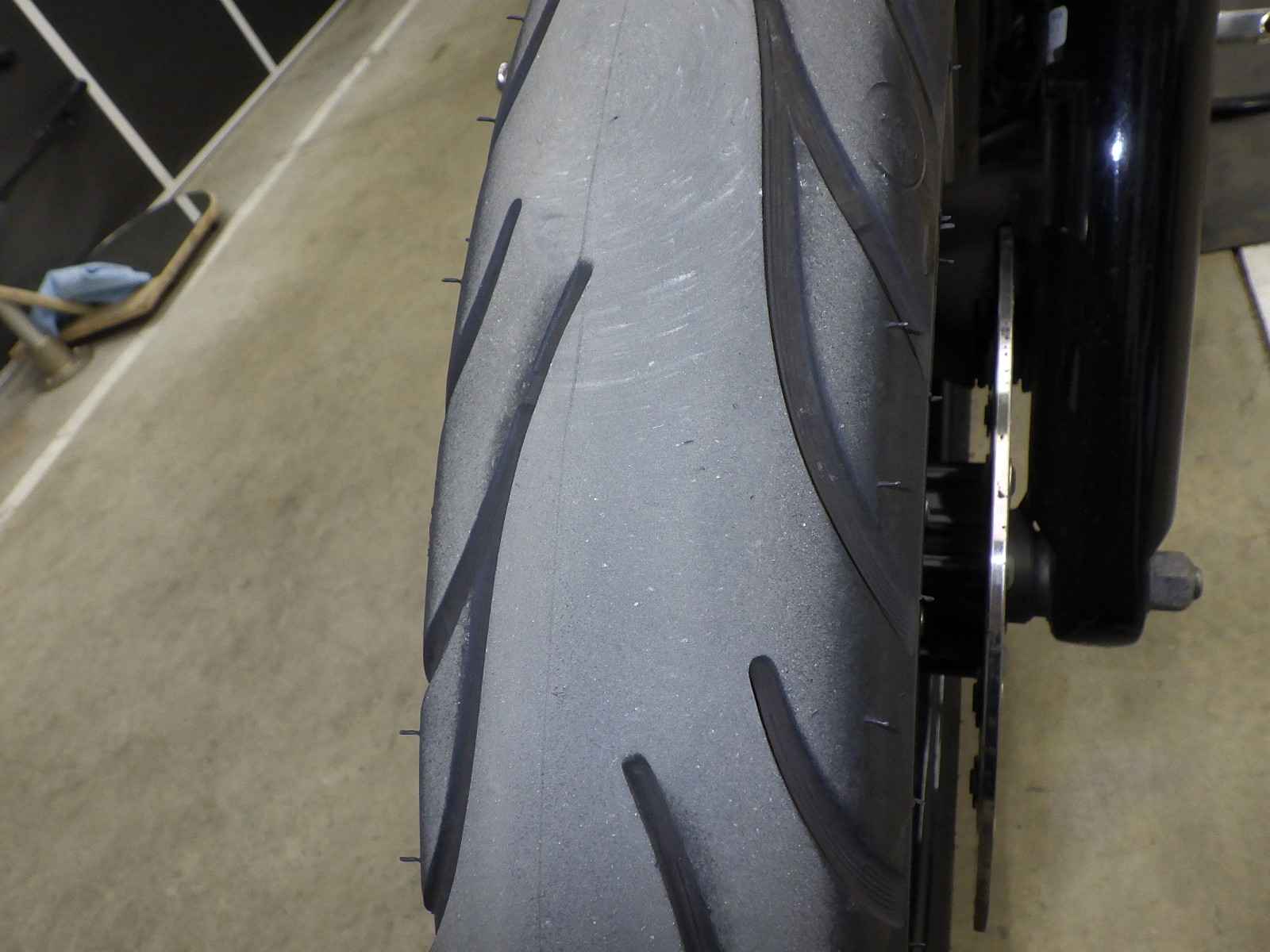 Передняя покрышка: Требуется замена изношенного шины.