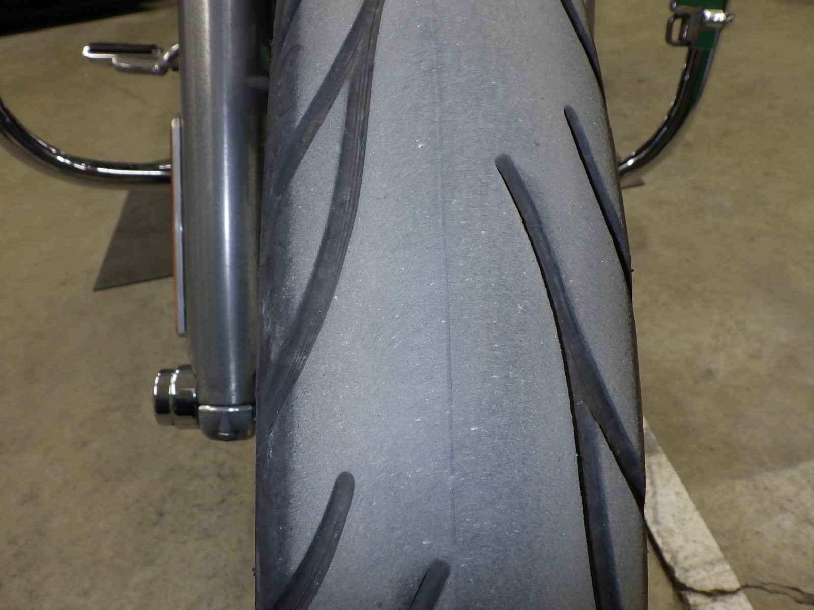 Передняя покрышка: Требуется замена изношенного шины.