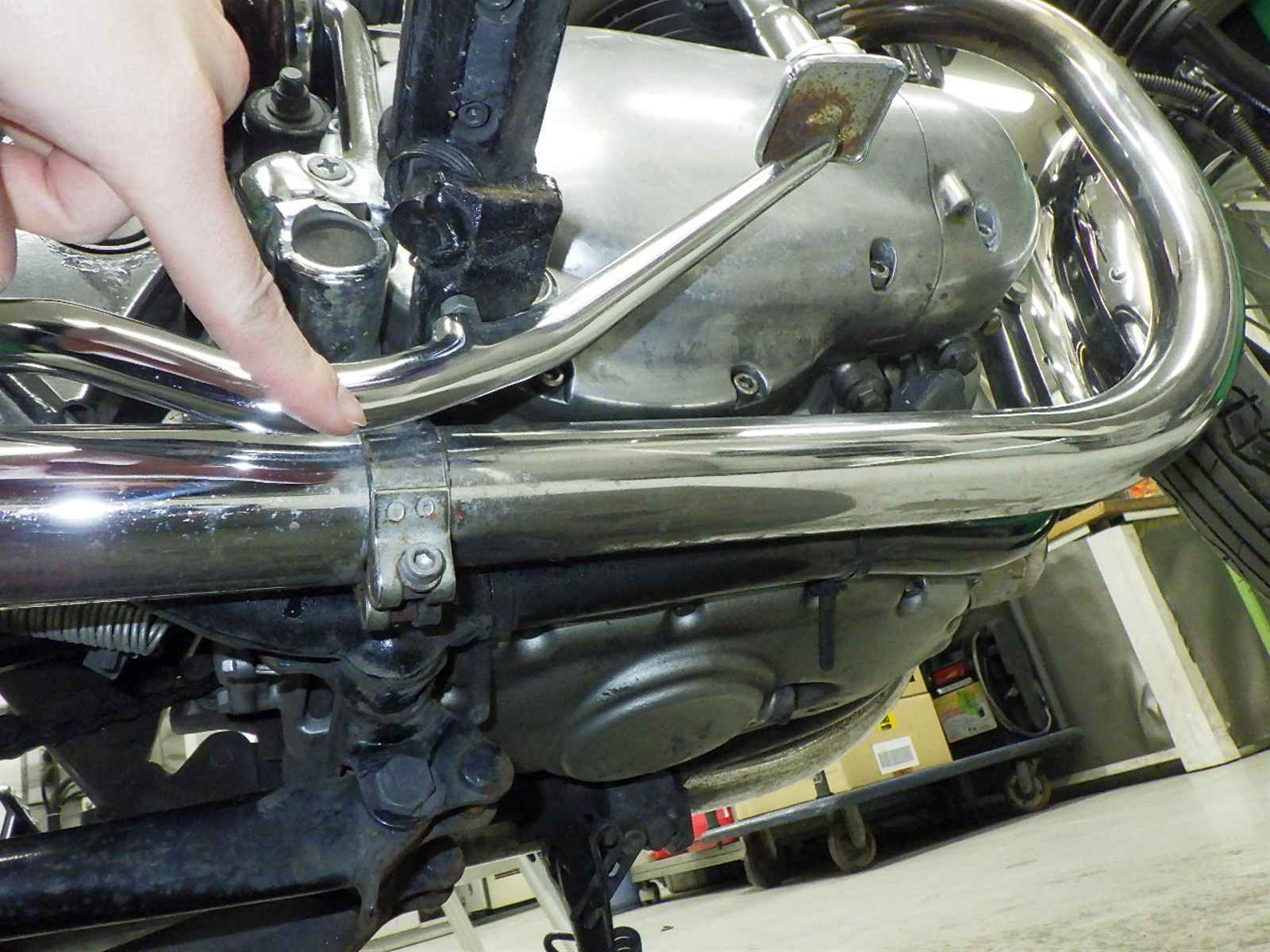 Выхлопная труба: Окисление на выхлопной трубе Уровень 3, Недостаток, Мотоцикл в состоянии резки