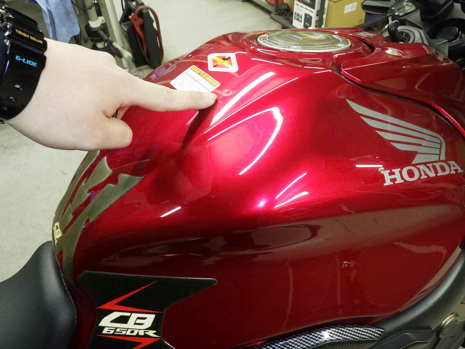 Бензобак: Недочет бака, Частичная покраска, Незначительно, облезлая краска, Установленный патч