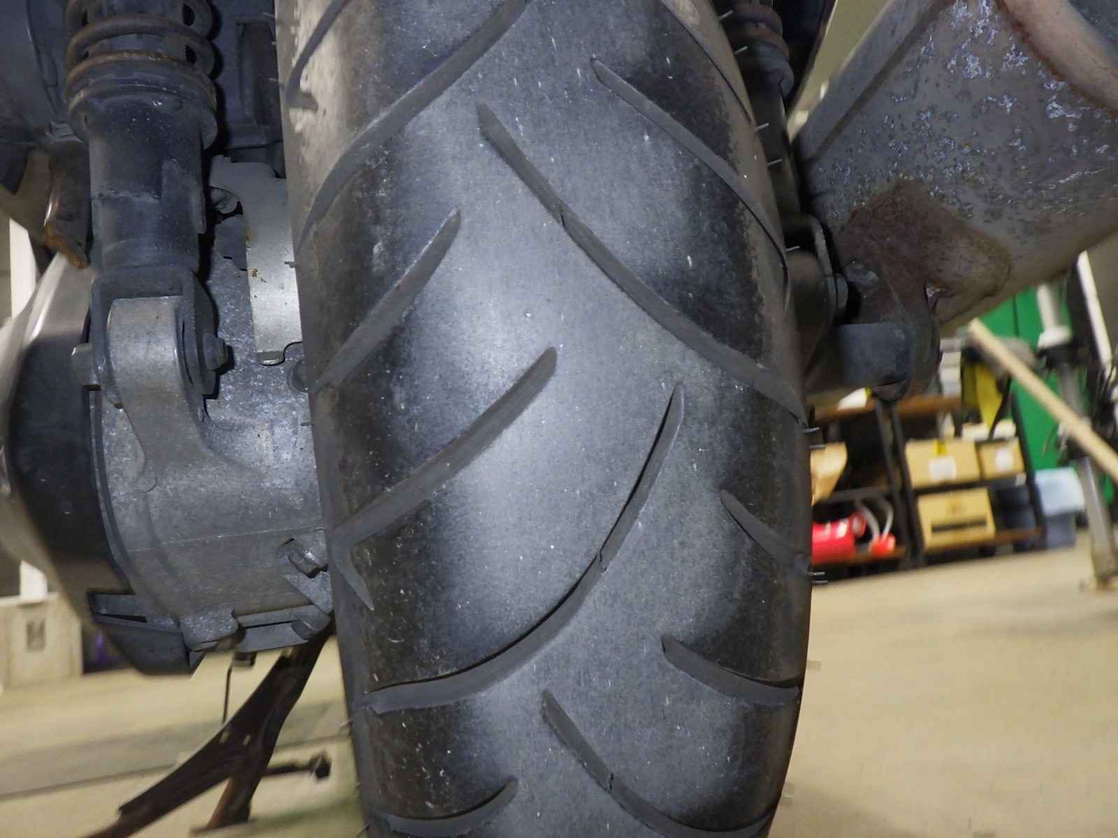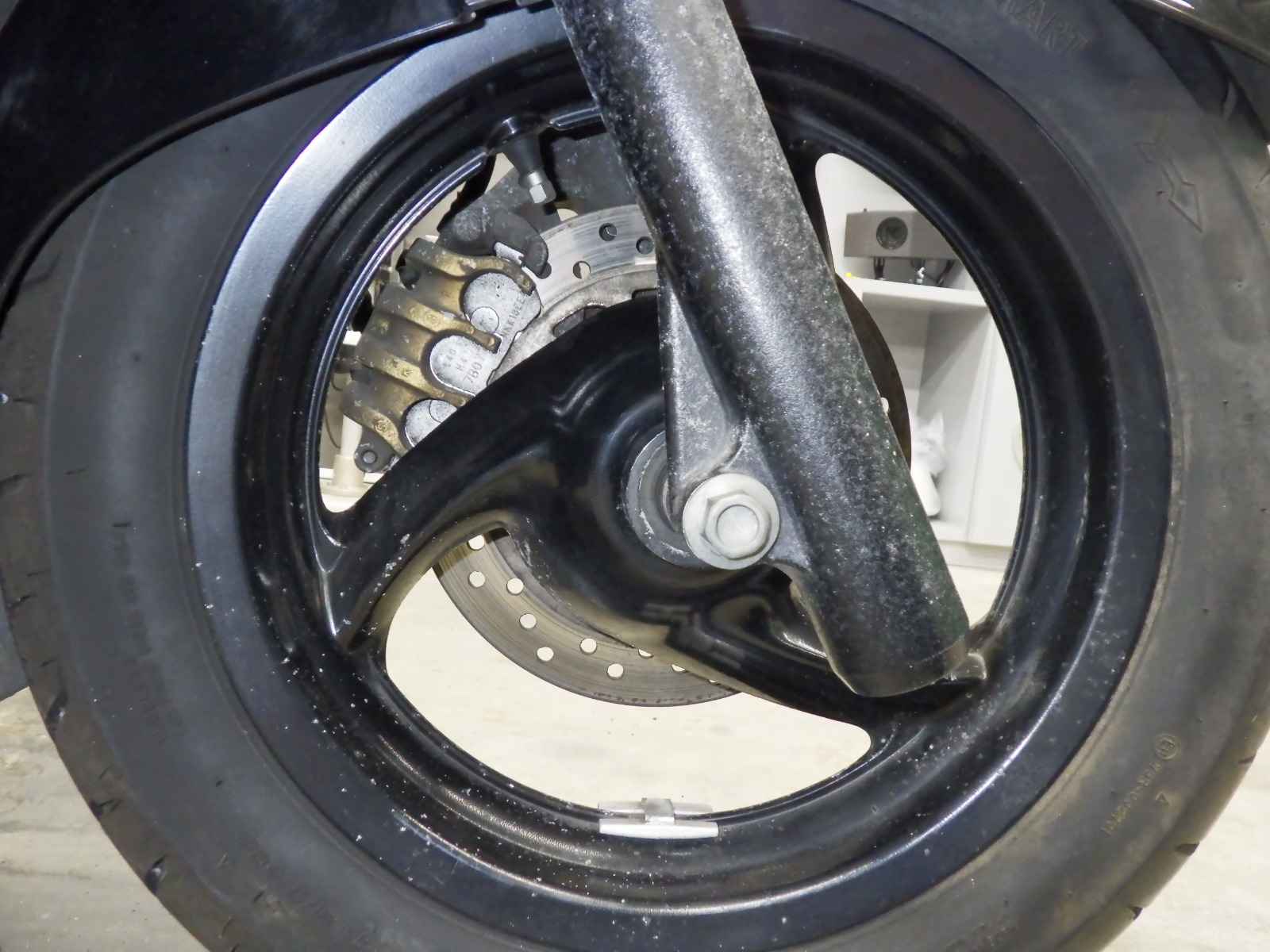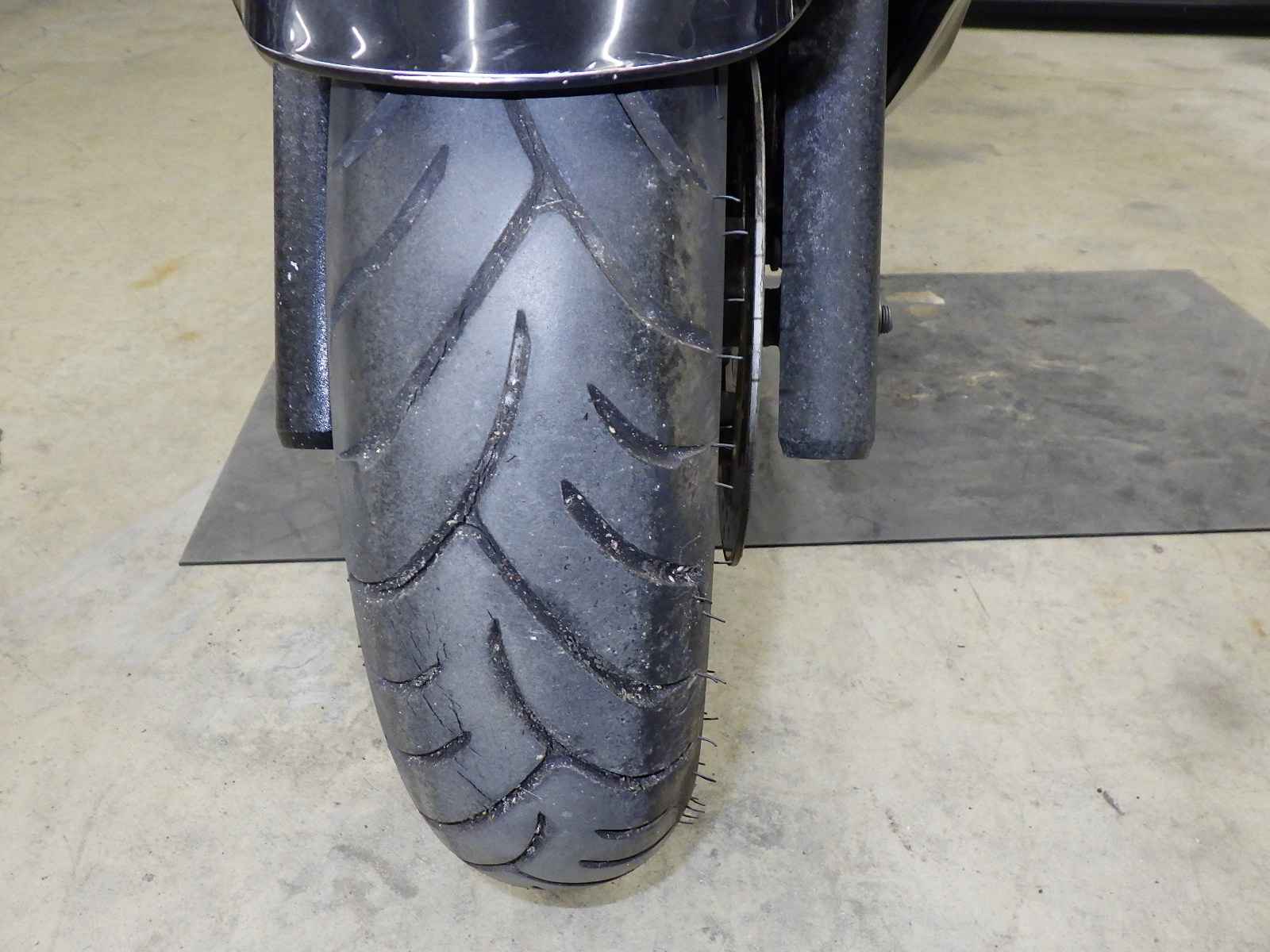 Передняя покрышка: Трещина на шине, требуется замена.