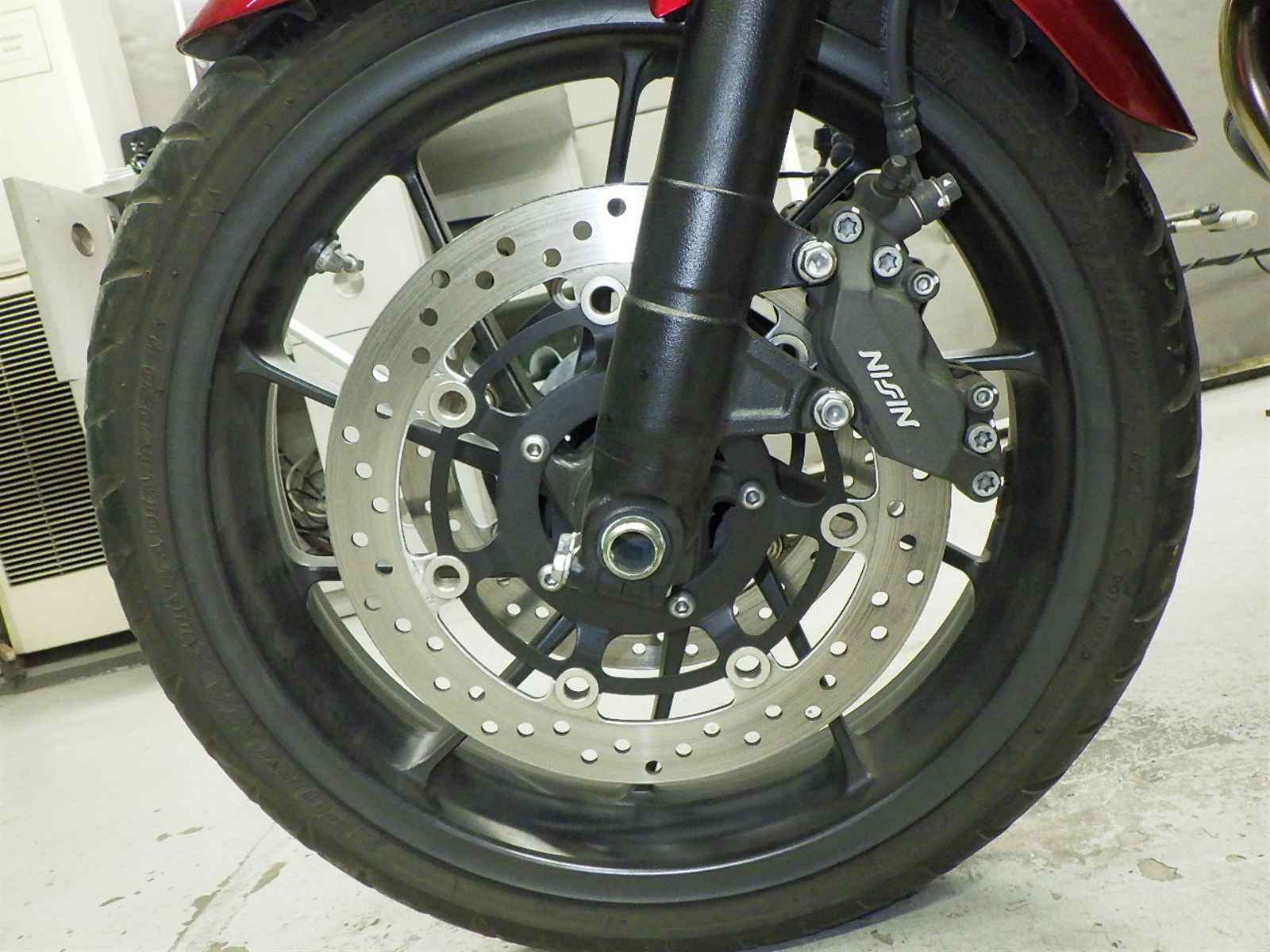 Передняя покрышка: Снижение давления в шине, Трещина требует замены.