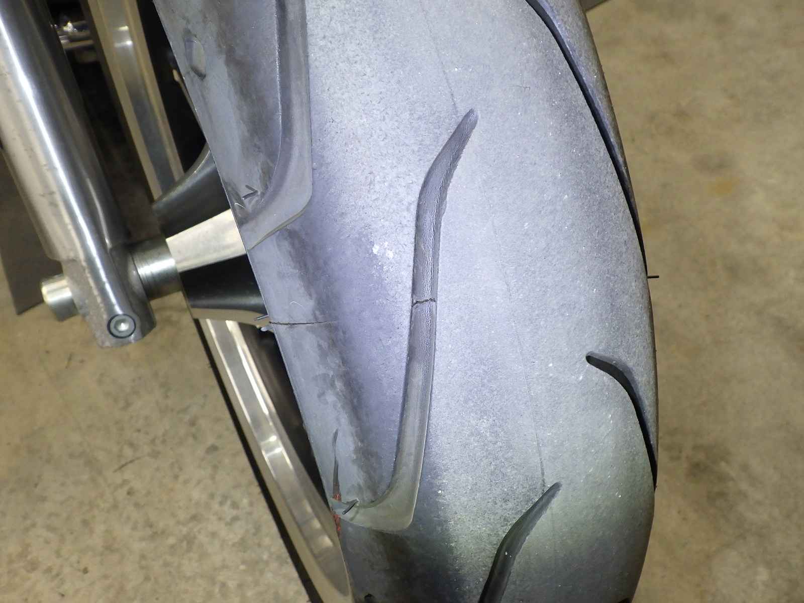 Передняя покрышка: Трещина на шине, Незначительно