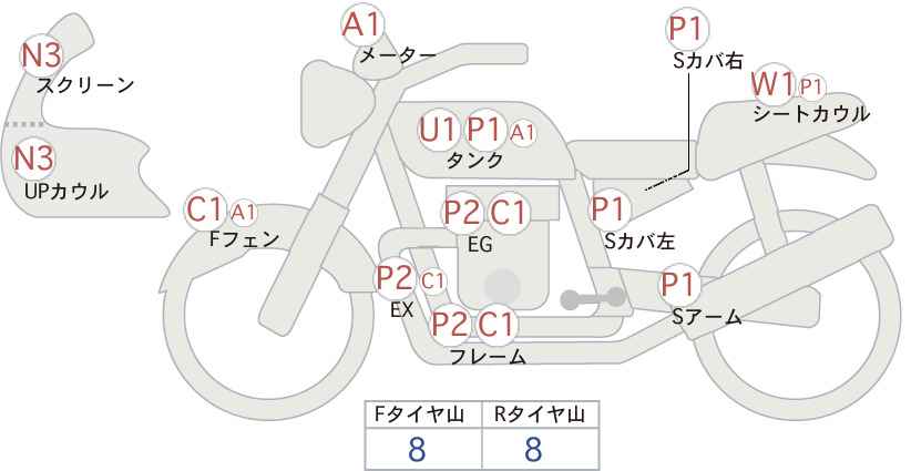 Изменения и тюнинг: руль, зеркала, поворотники, крылья, сиденье, подножки, глушитель (трасса), амортизатор