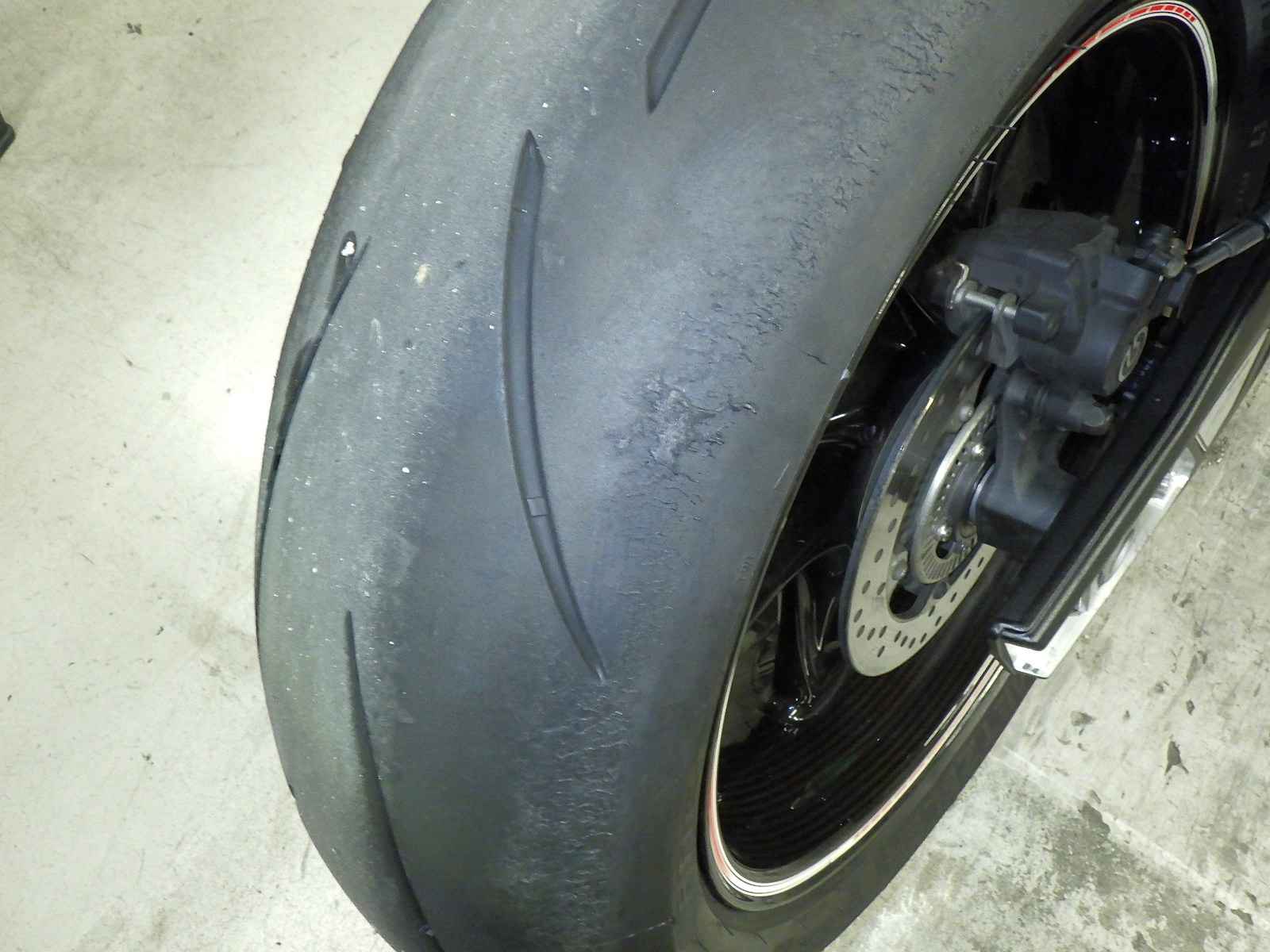 Задняя покрышка: Требуется замена шины, Таять