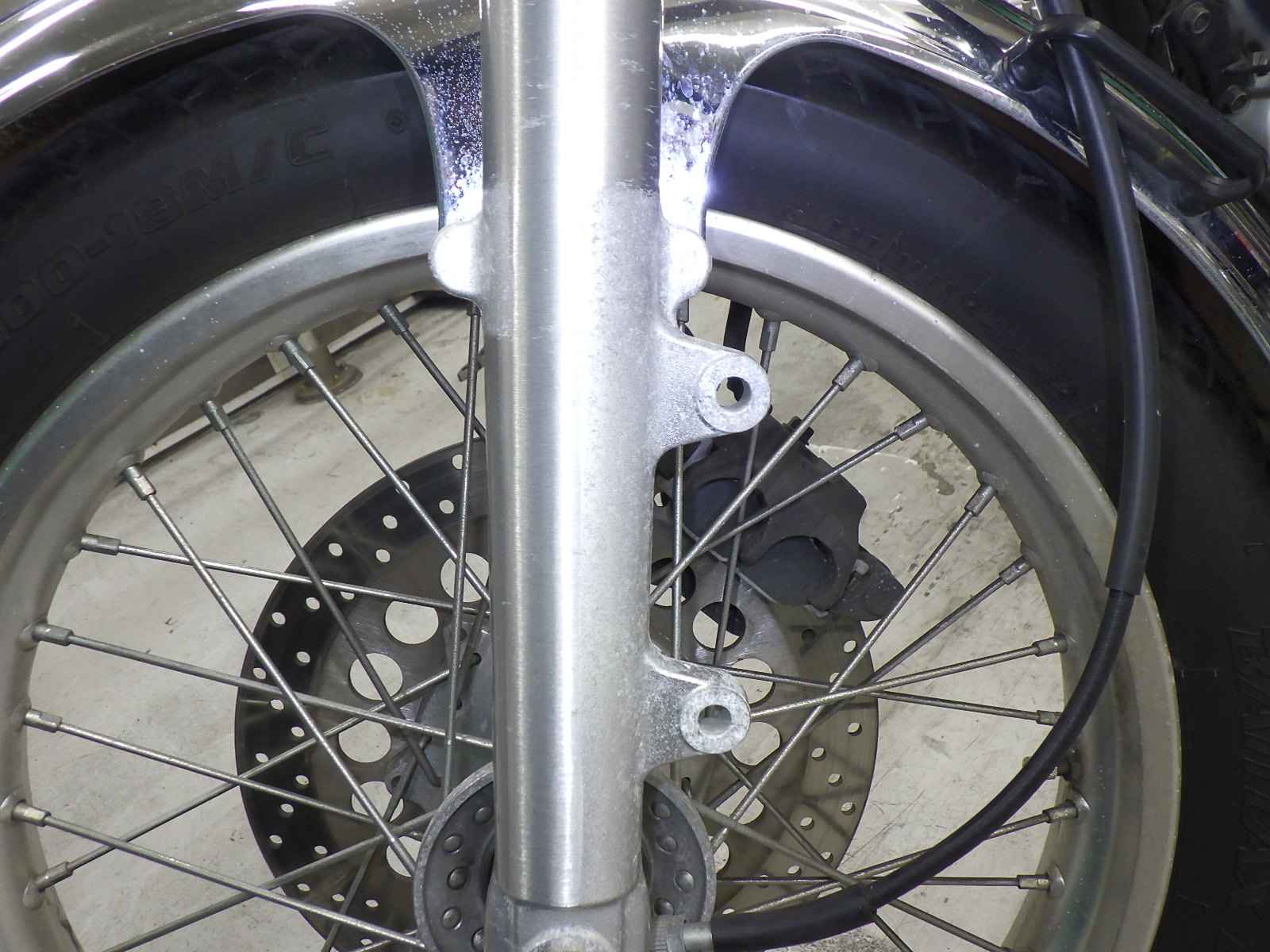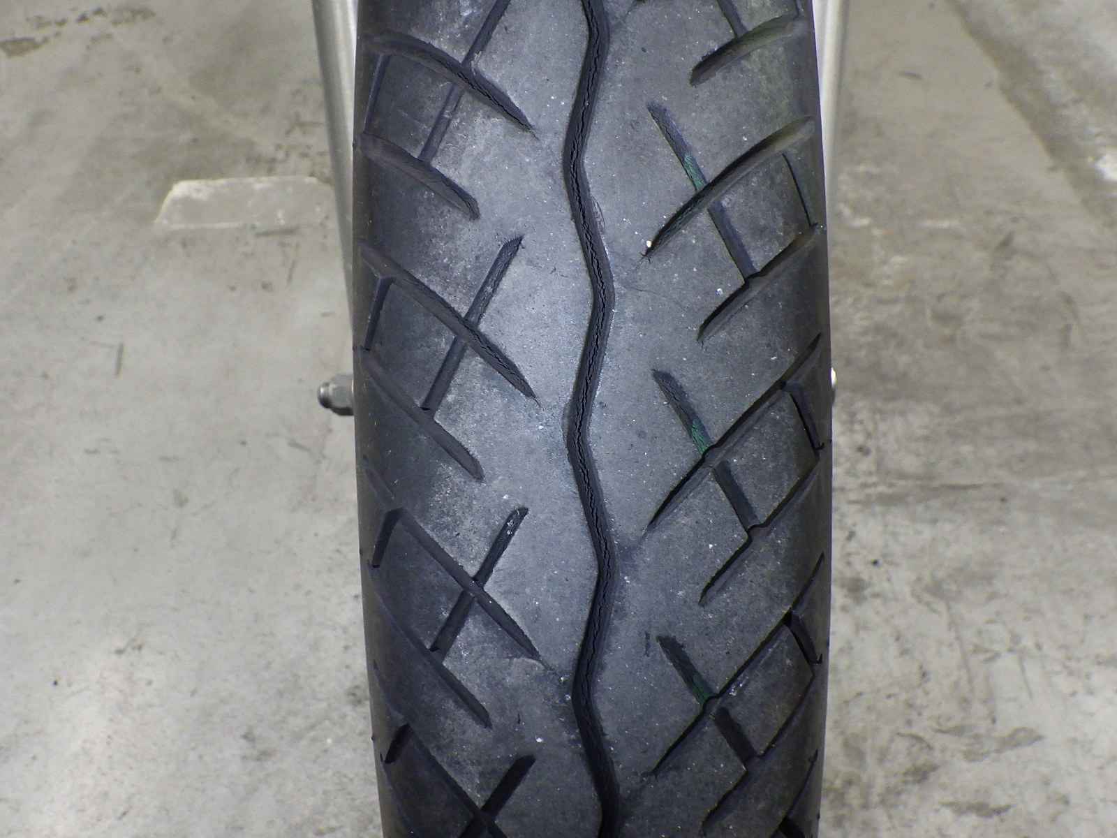 Передняя покрышка: Трещина на шине, требуется замена.