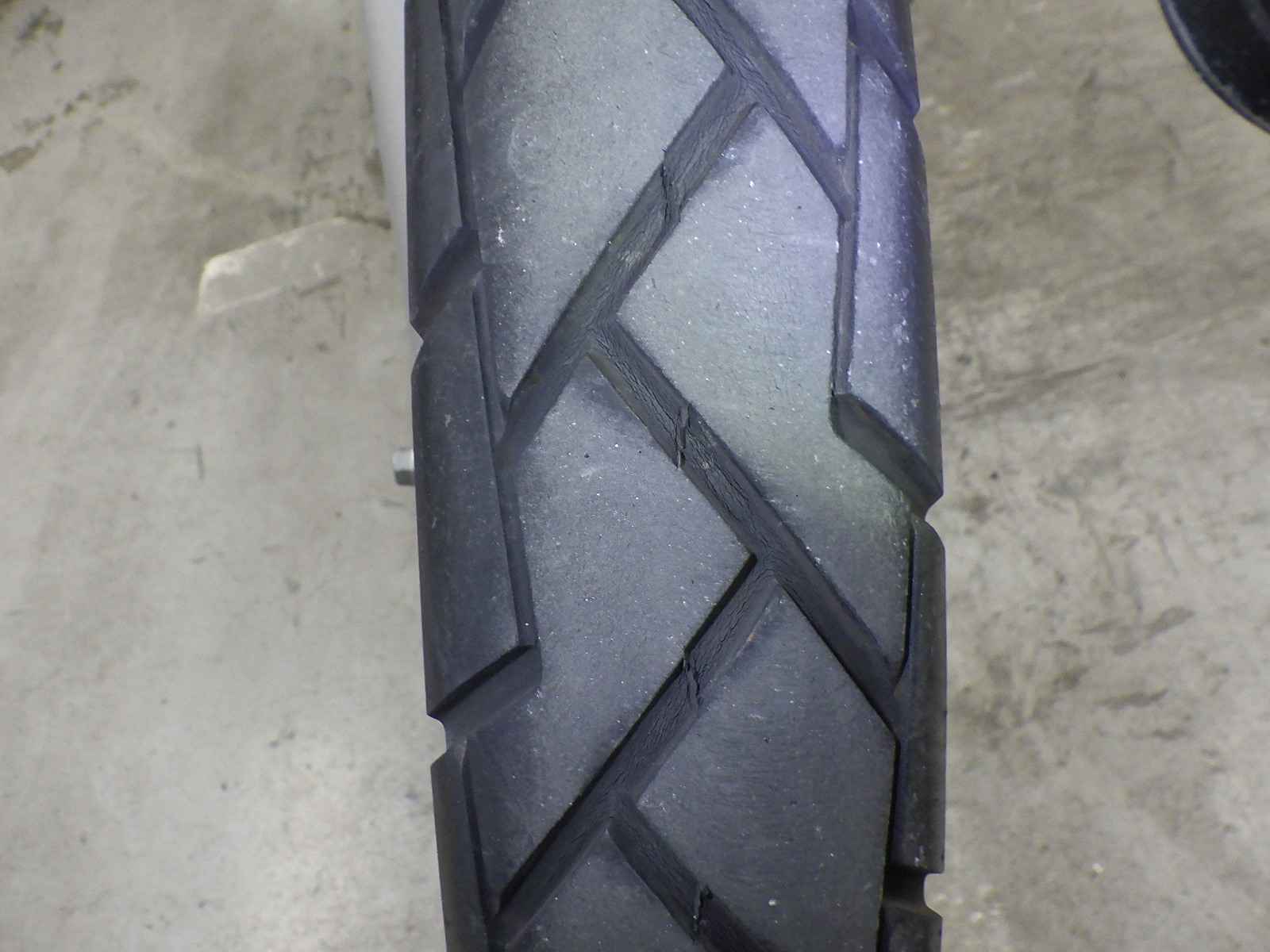 Передняя покрышка: Трещина на шине, требуется замена.