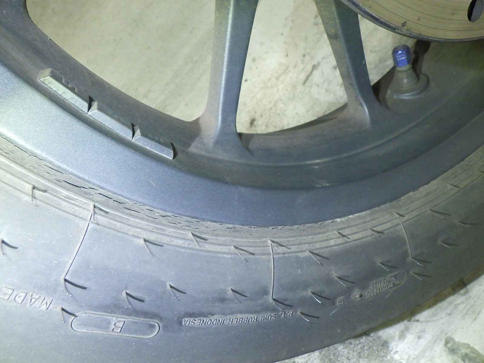 Передняя покрышка: Снижение давления в шине, Трещина