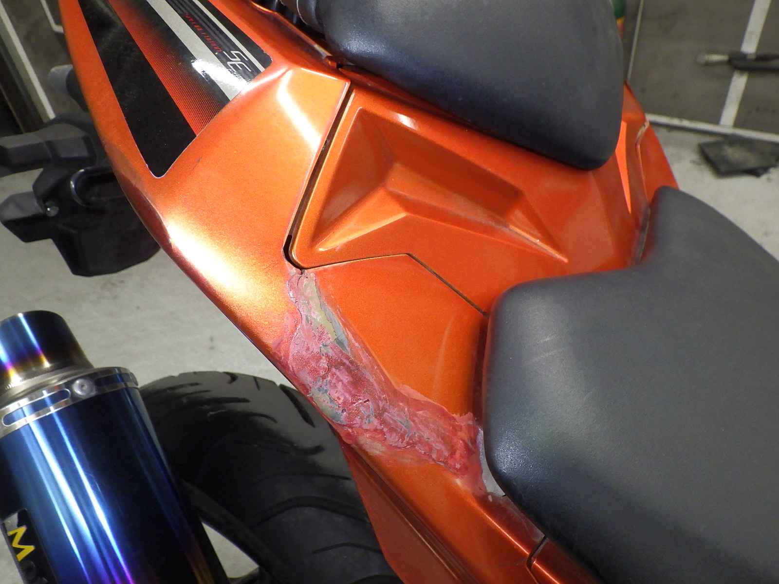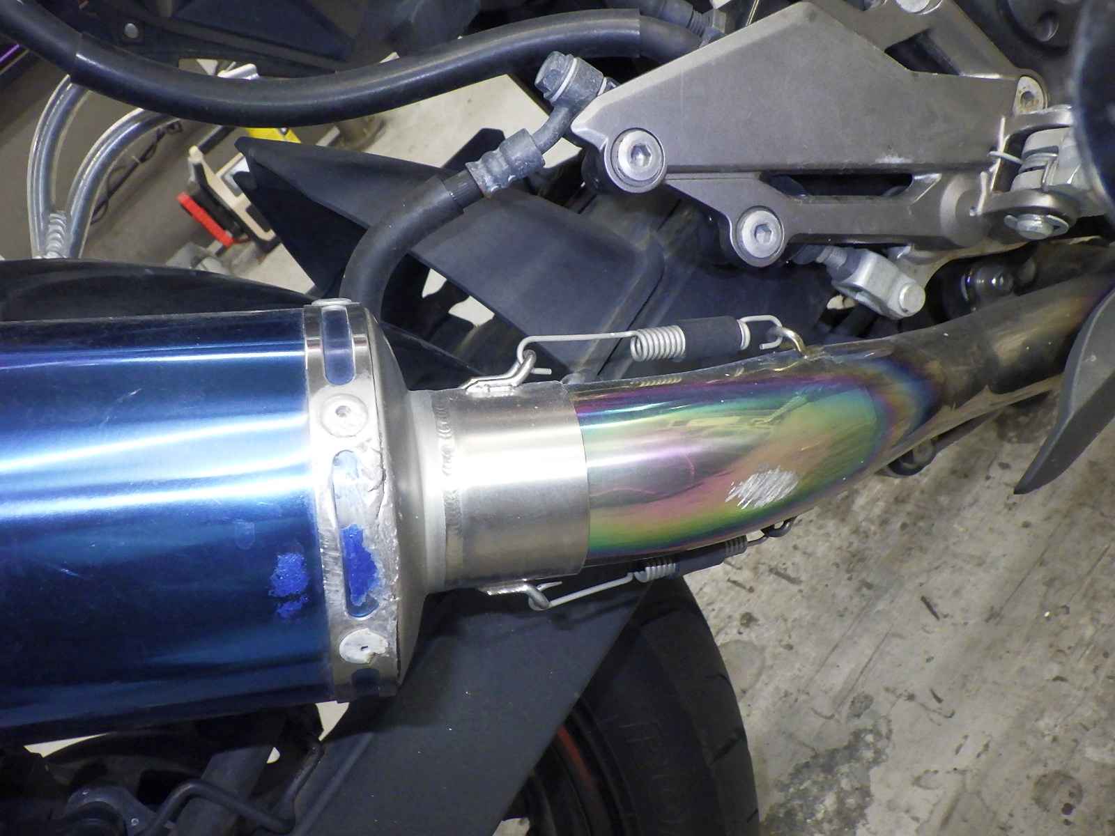 外装変色大。エンジンガスケット修正不良。カウルズレ大。