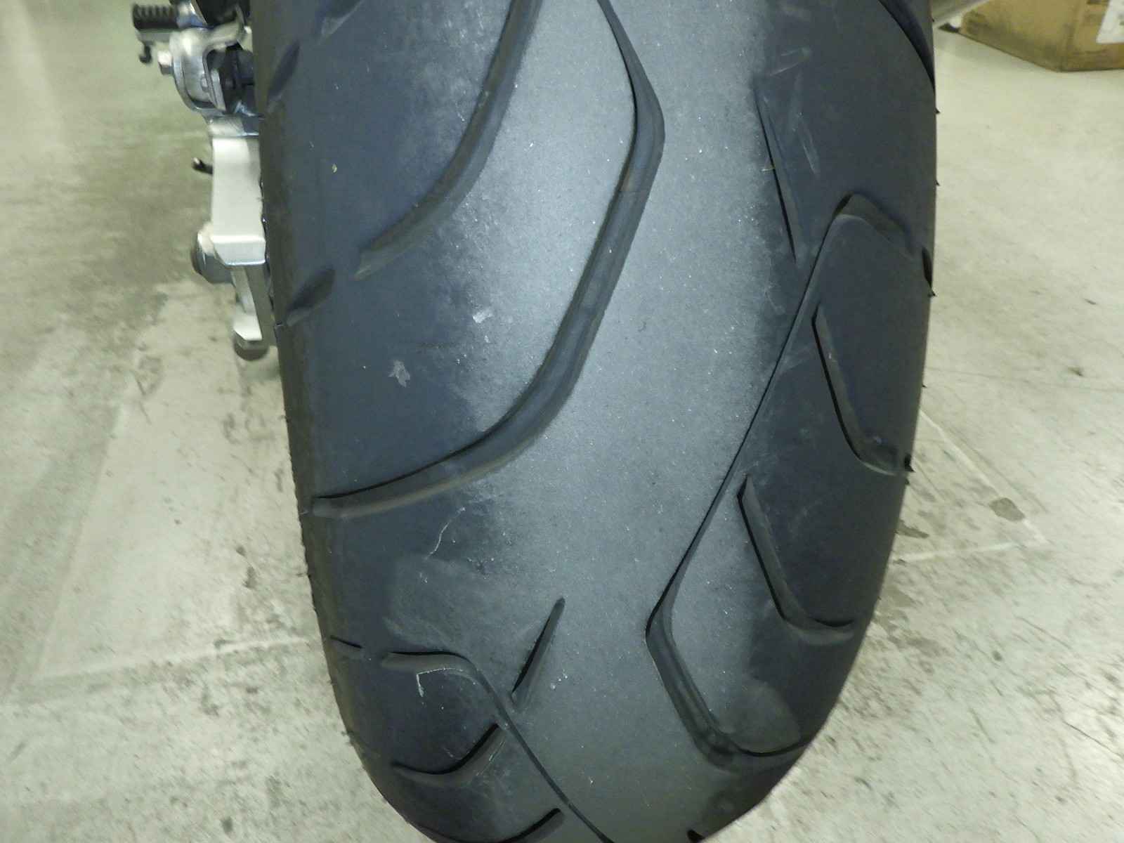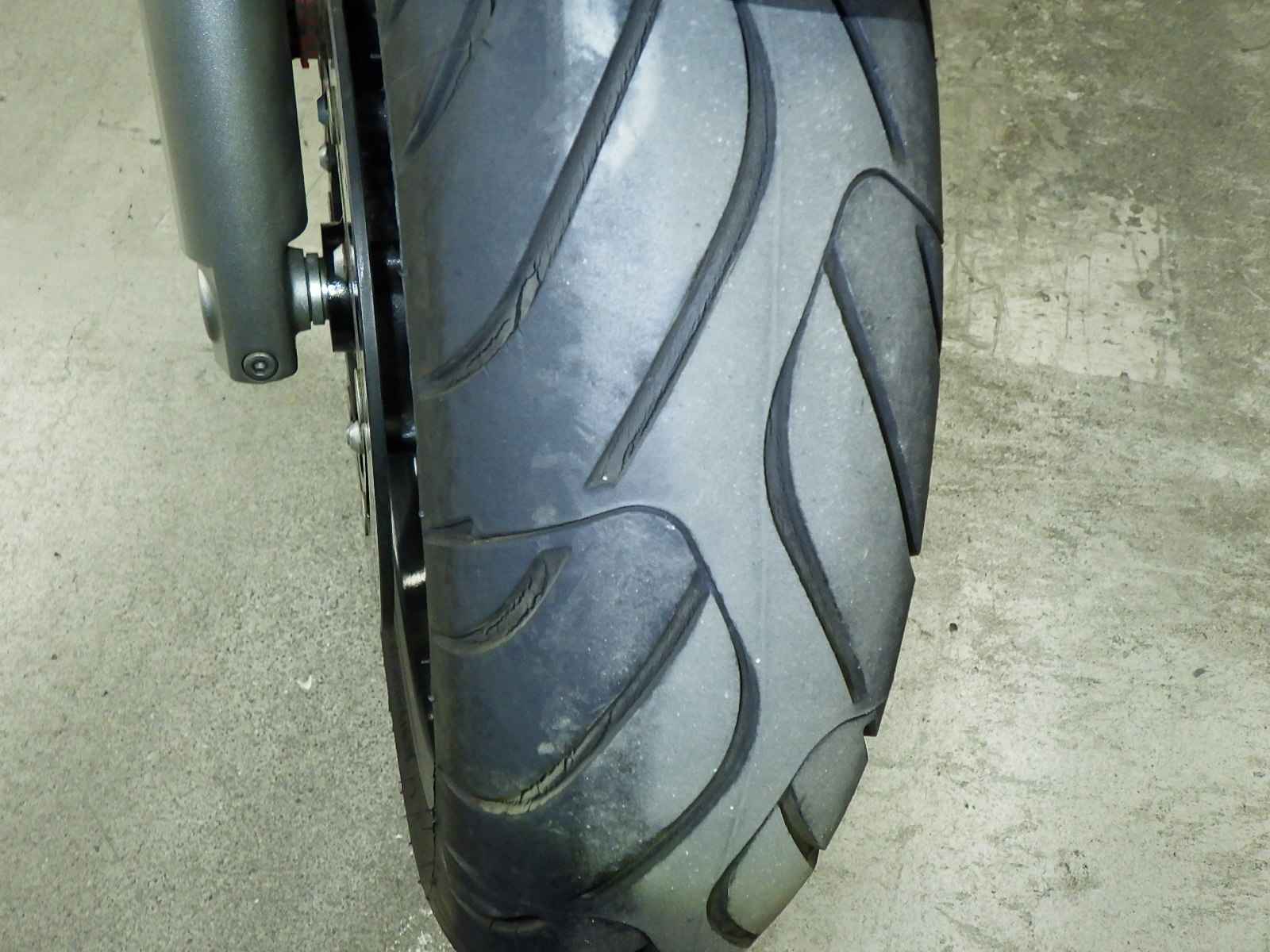 Передняя покрышка: Трещина на шине, требуется замена.
