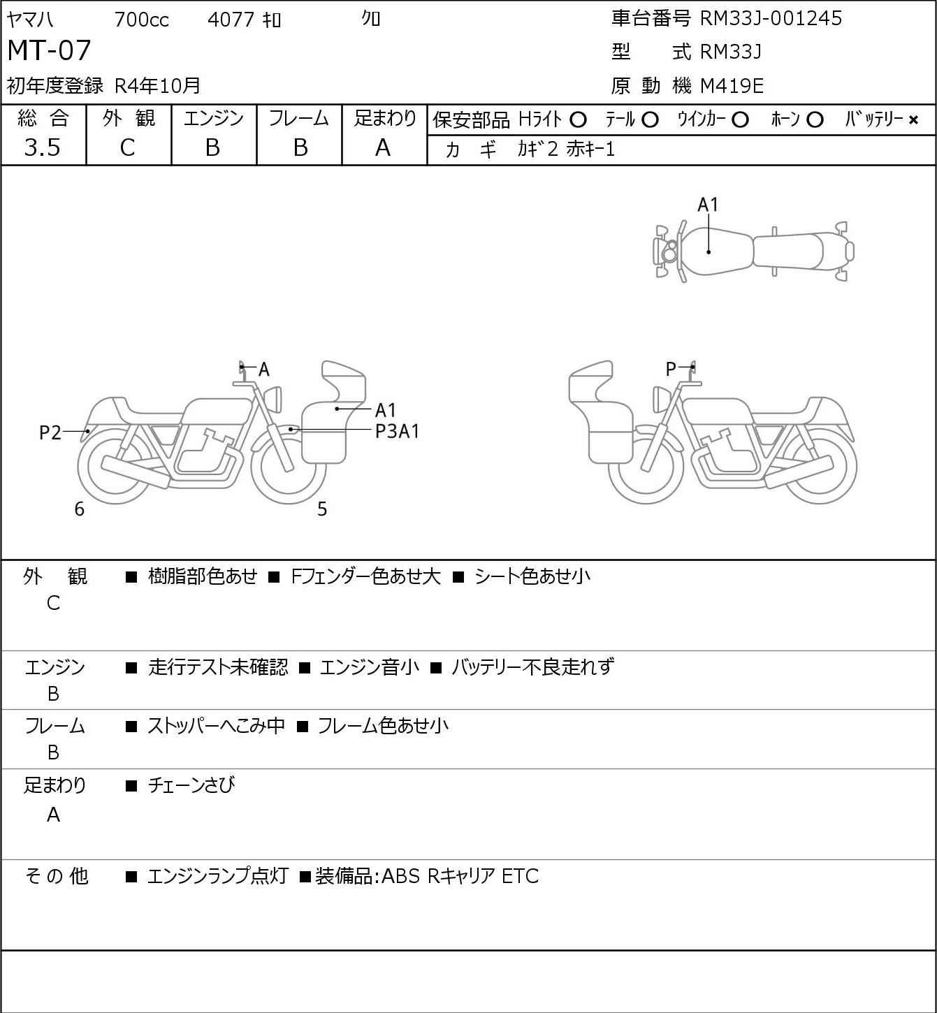 Номер рамы: RM33J-001245