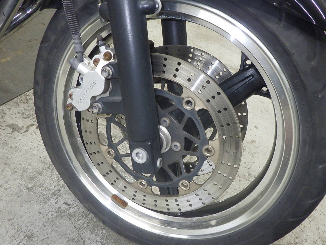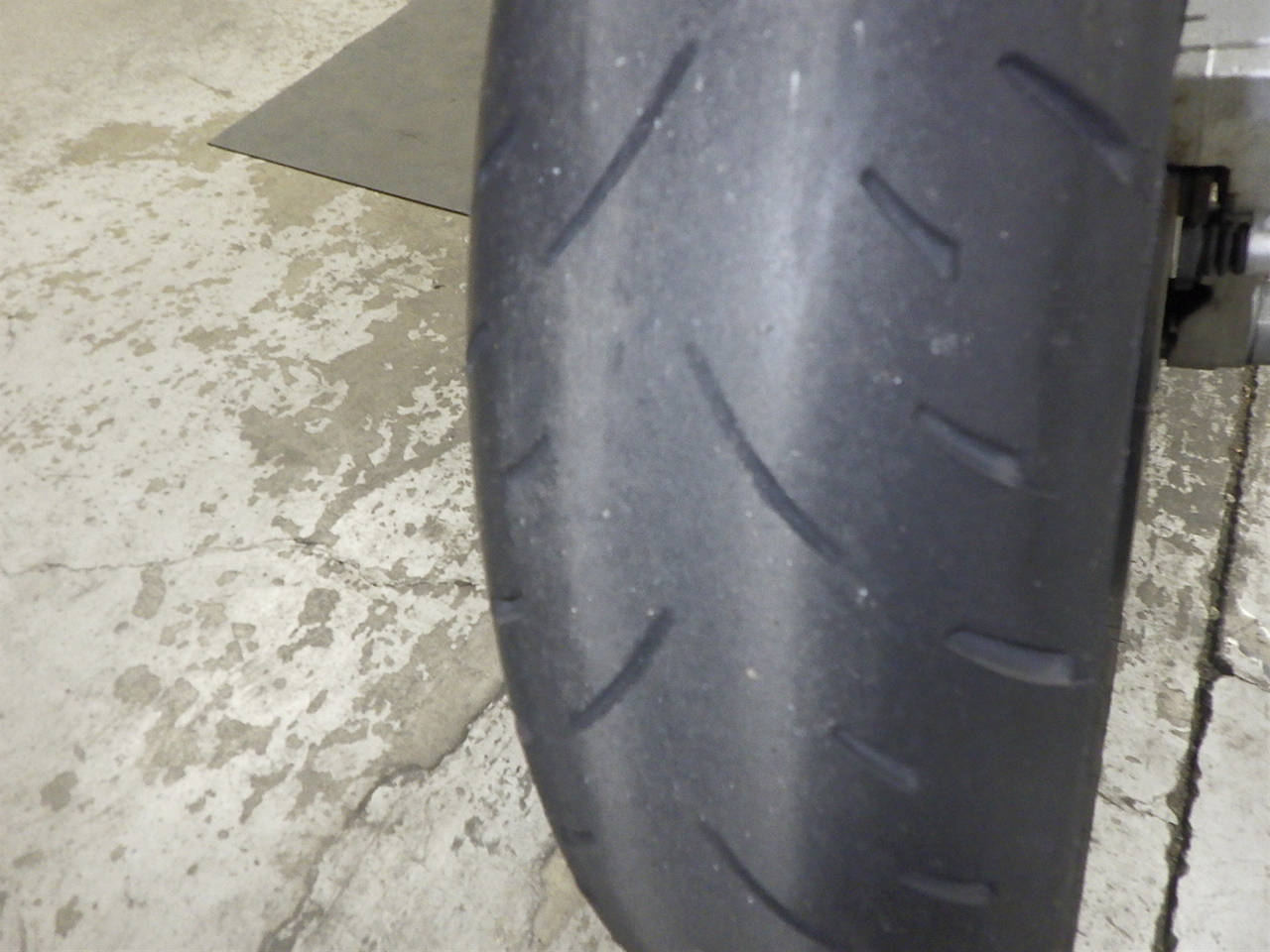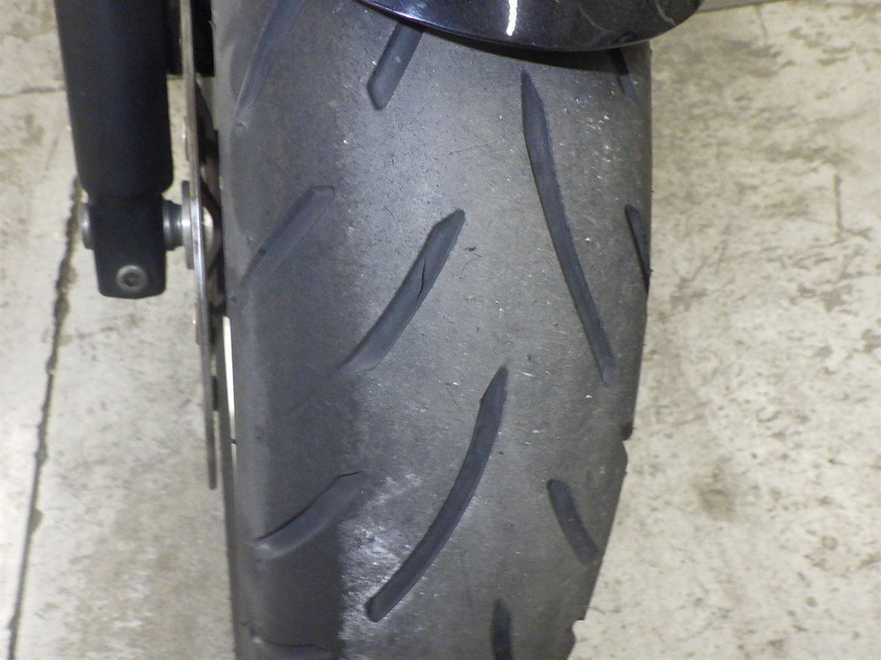 Передняя покрышка: Трещина на шине, требуется замена.