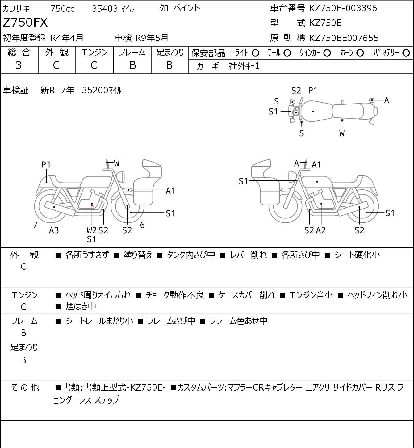 Номер рамы: KZ750E-003396