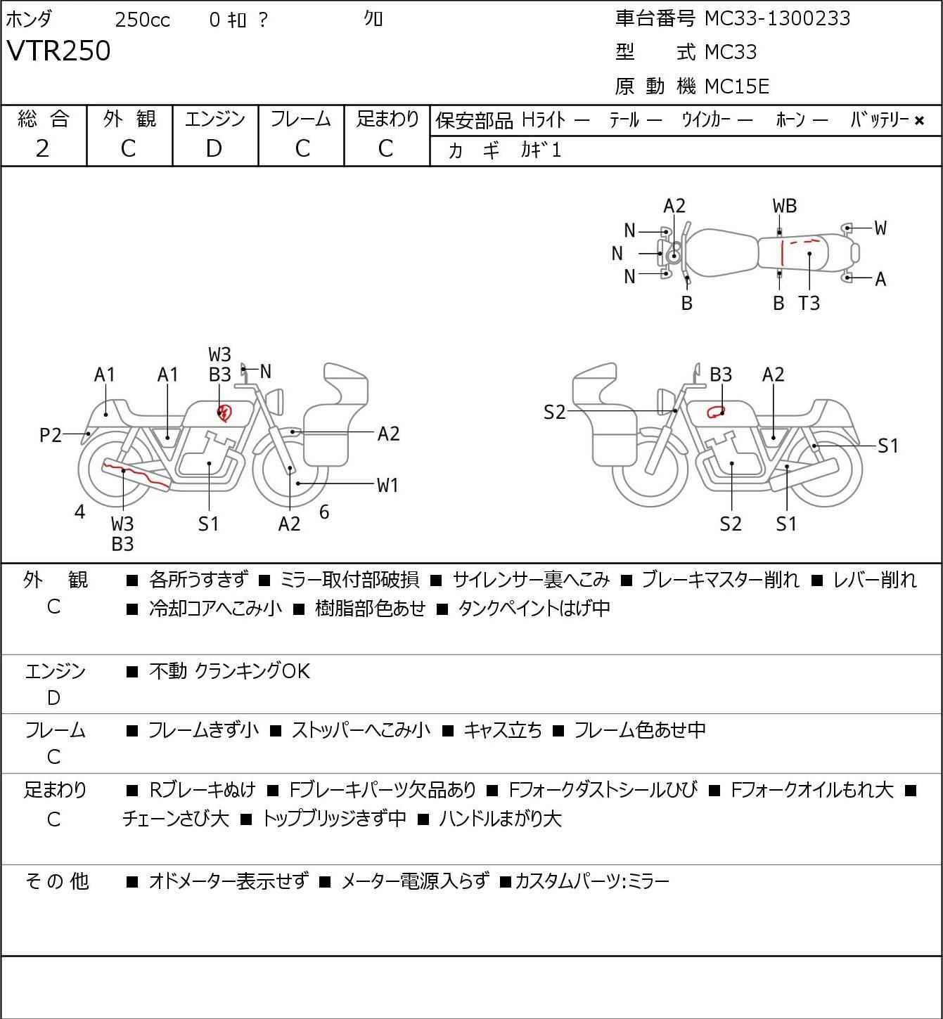 Номер рамы: MC33-1300233