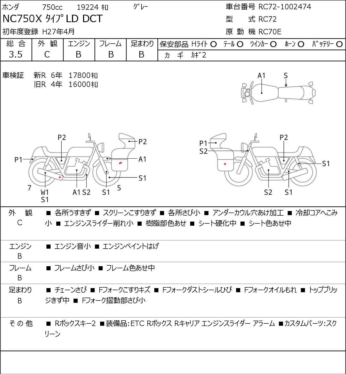 Номер рамы: RC72-1002474