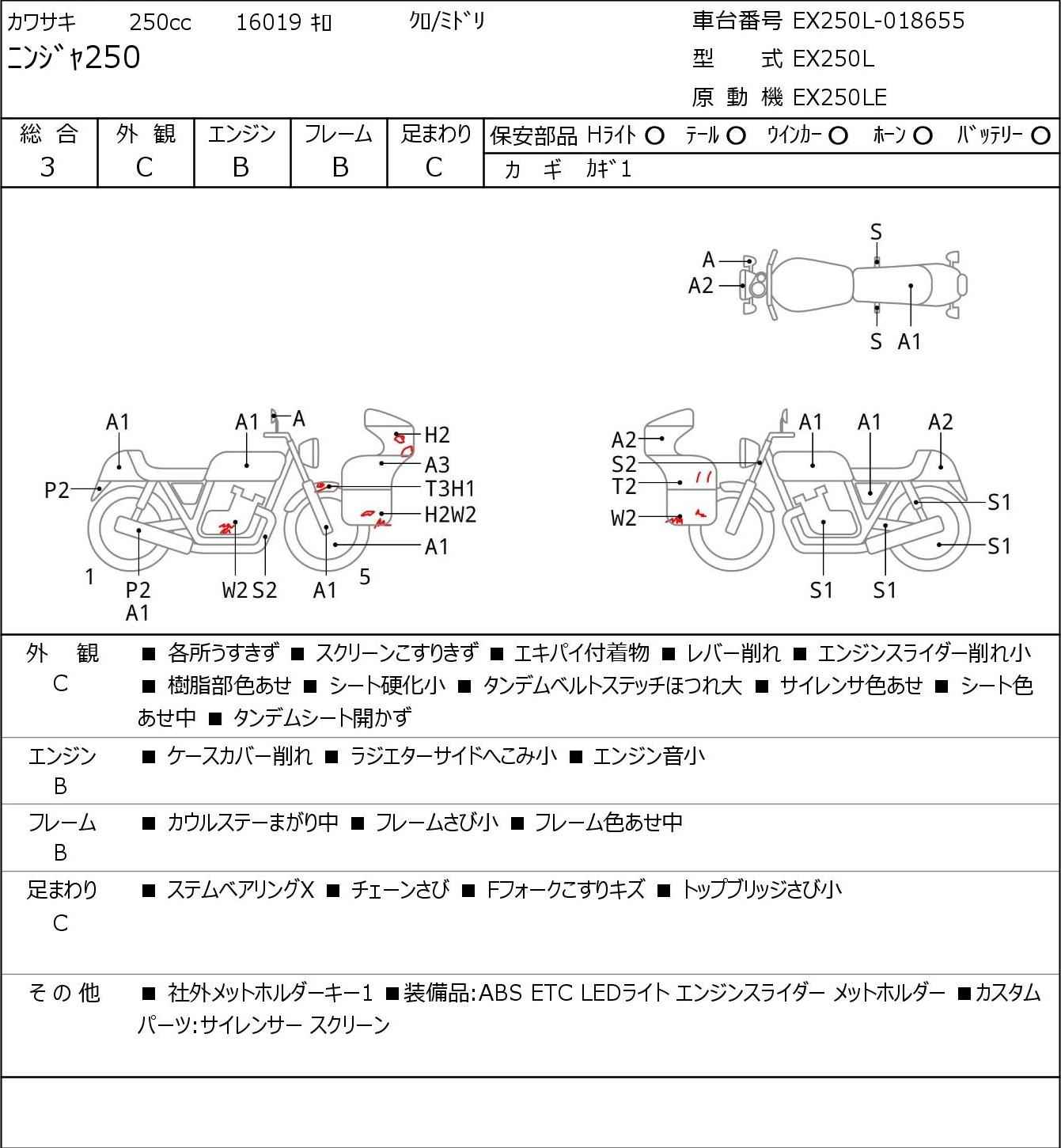 Номер рамы: EX250L-018655
