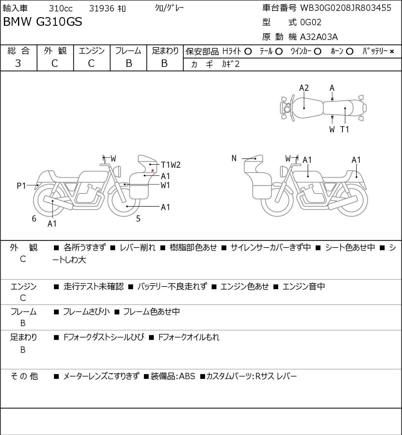 Номер рамы: WB30G0208JR803455