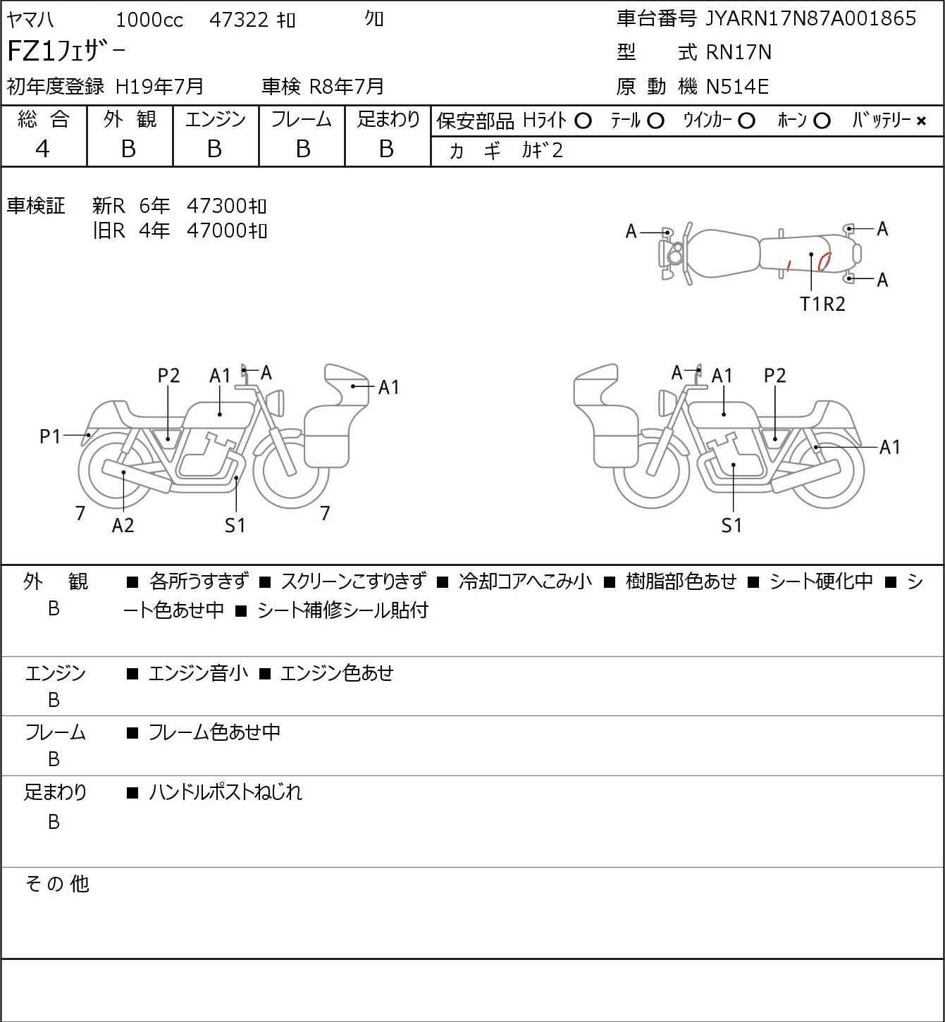 Номер рамы: JYARN17N87A001865