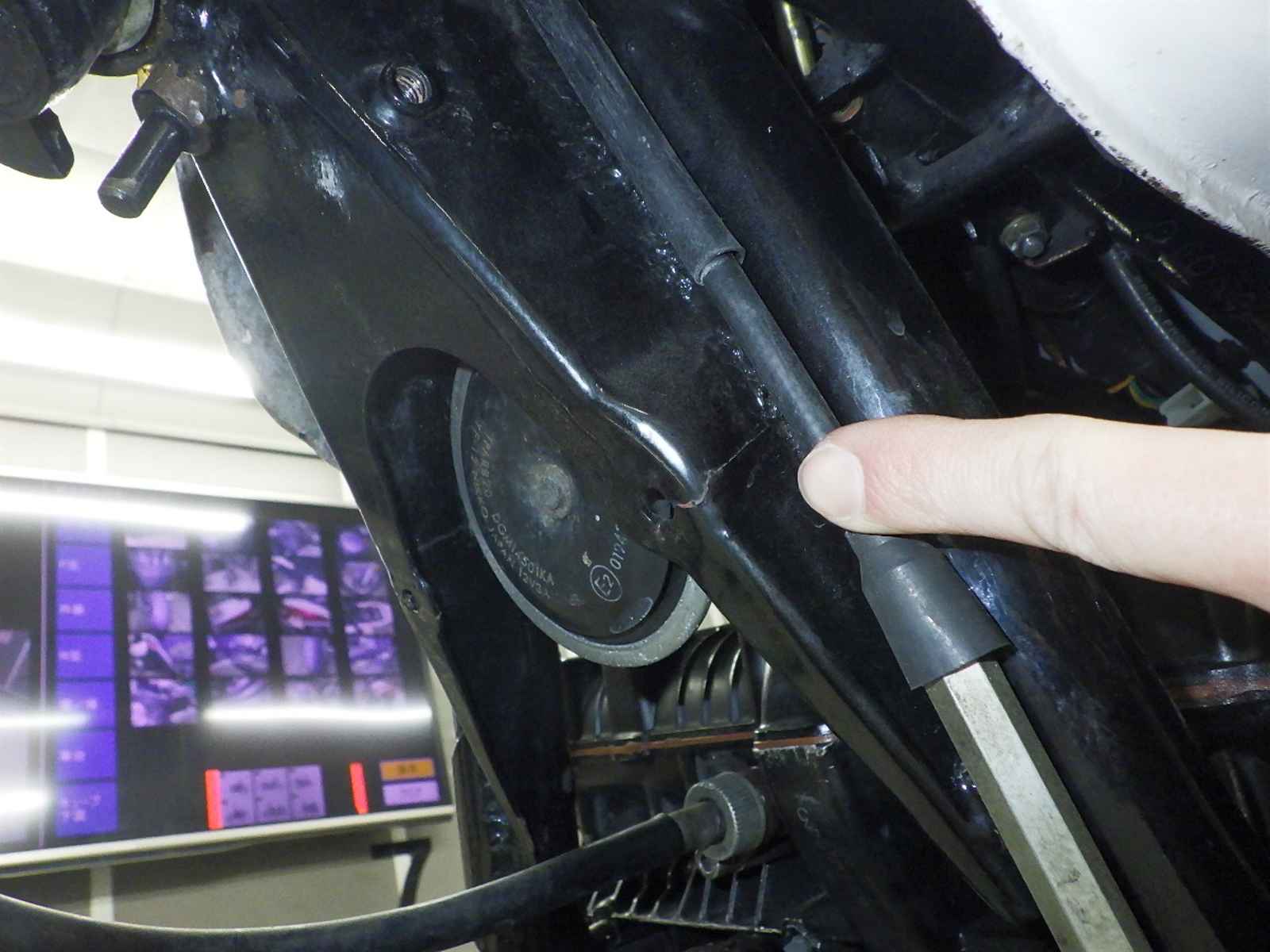 Подножка мотоцикла: Окисление на подножке Уровень 3, Недостаток, Изгиб, Отсутствует центральная деталь