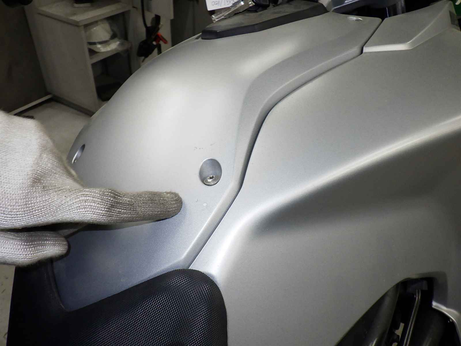 Бензобак: Покрытие мотоцикла облезло, образовав "плешину" в краске
