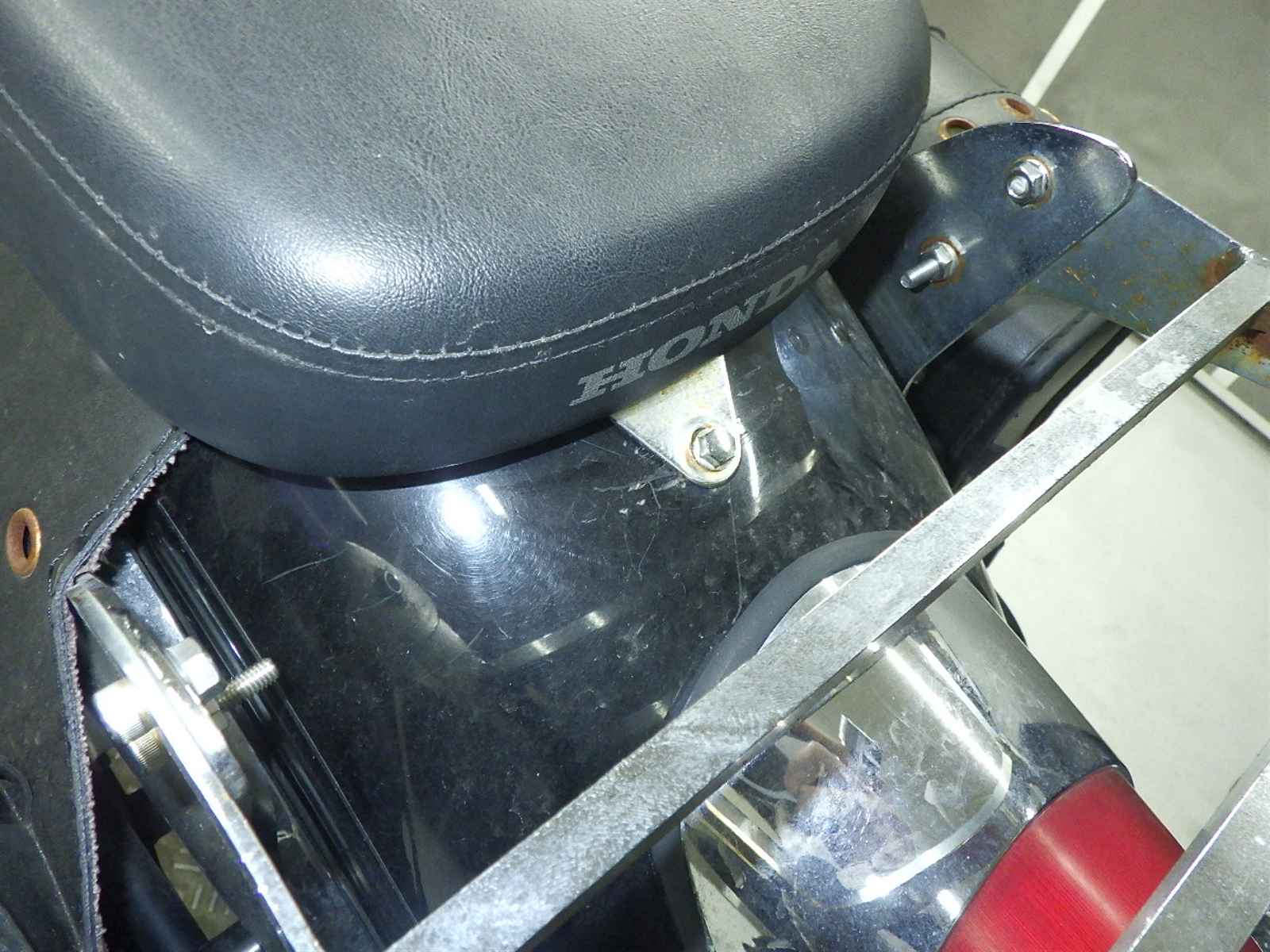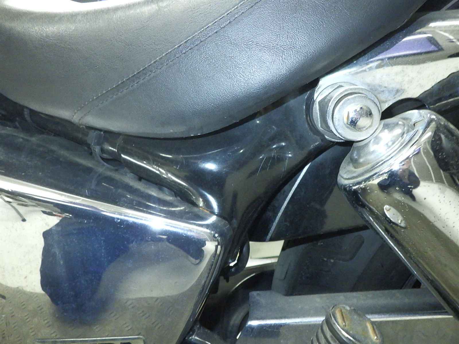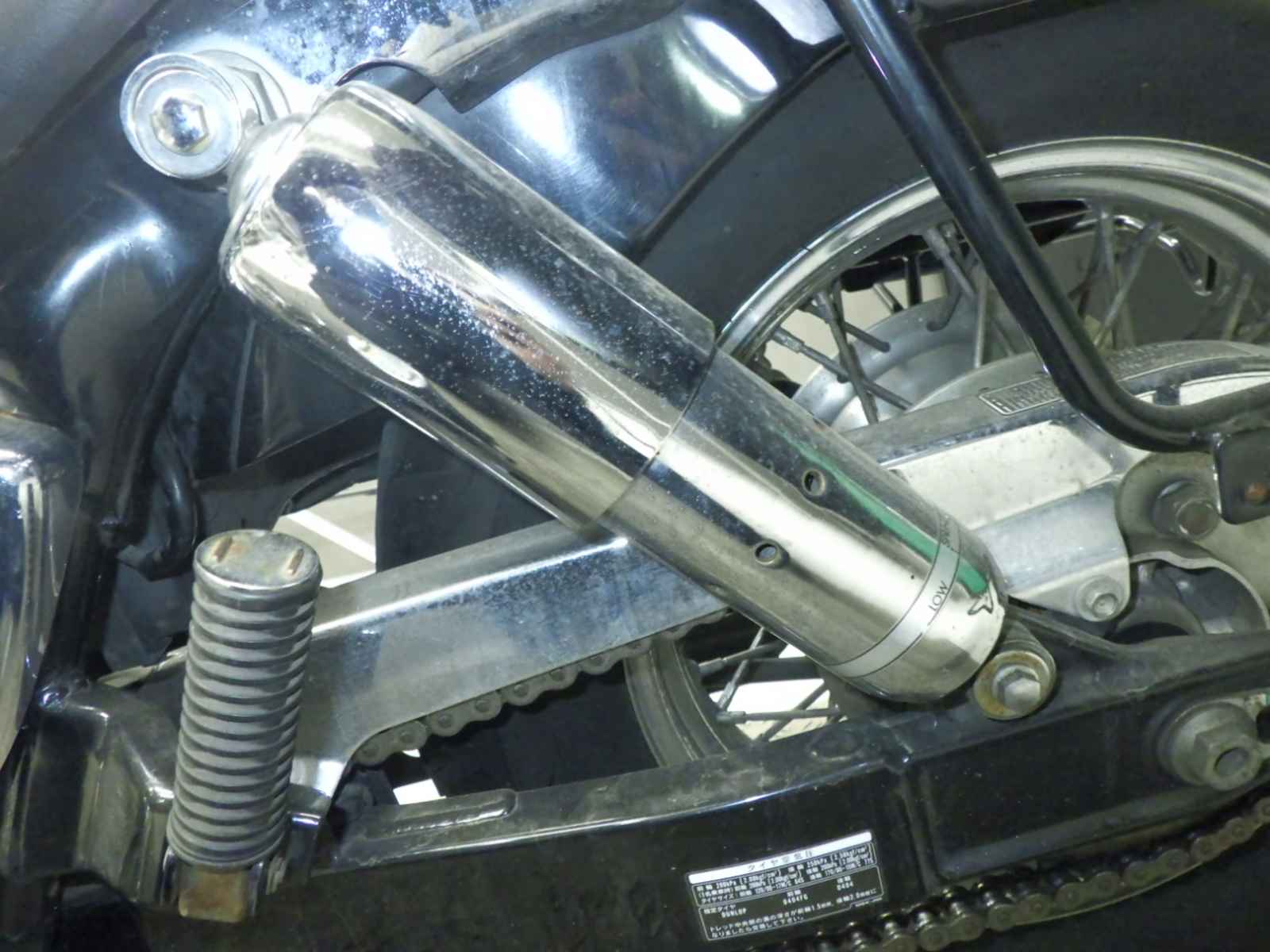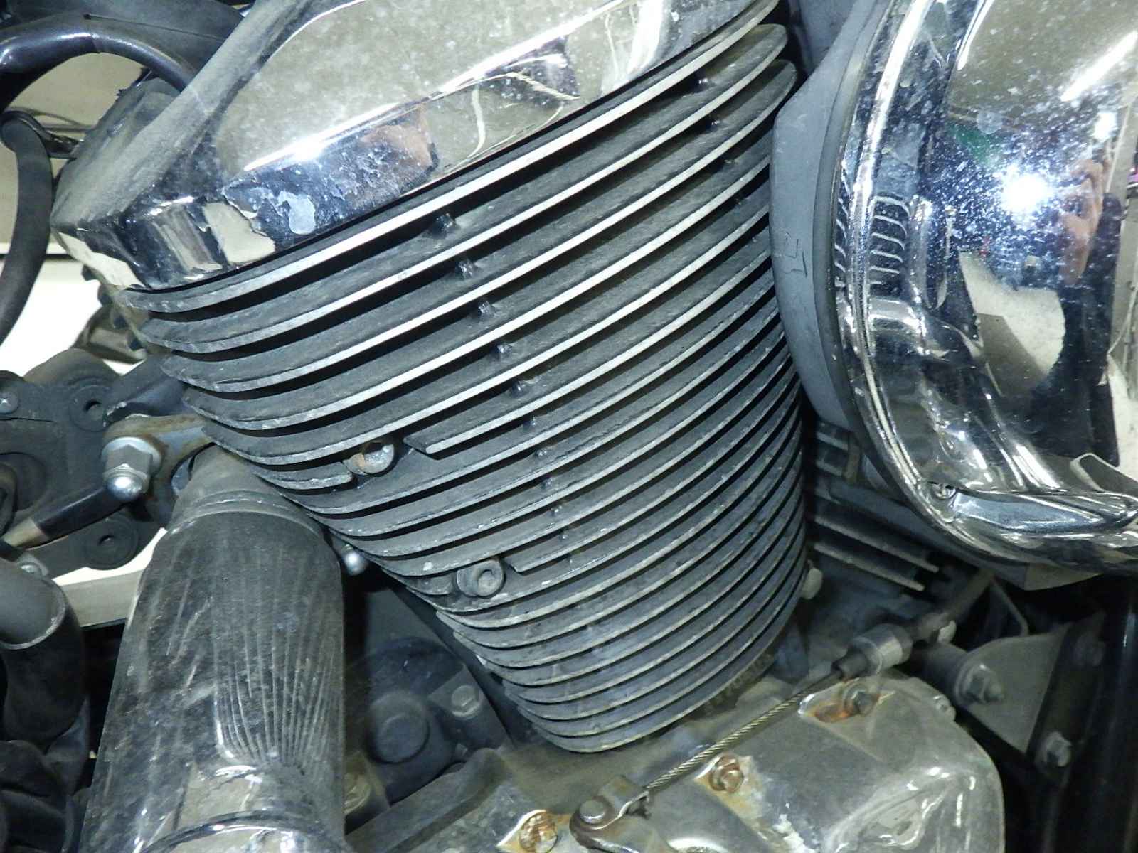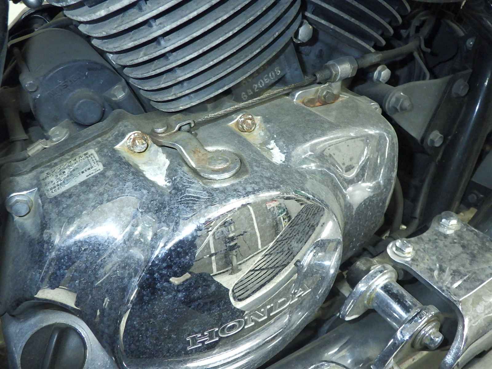 エンジンガード付き削れ大。前足回り曲がり小。全体キズ多、サビ多、変色大。