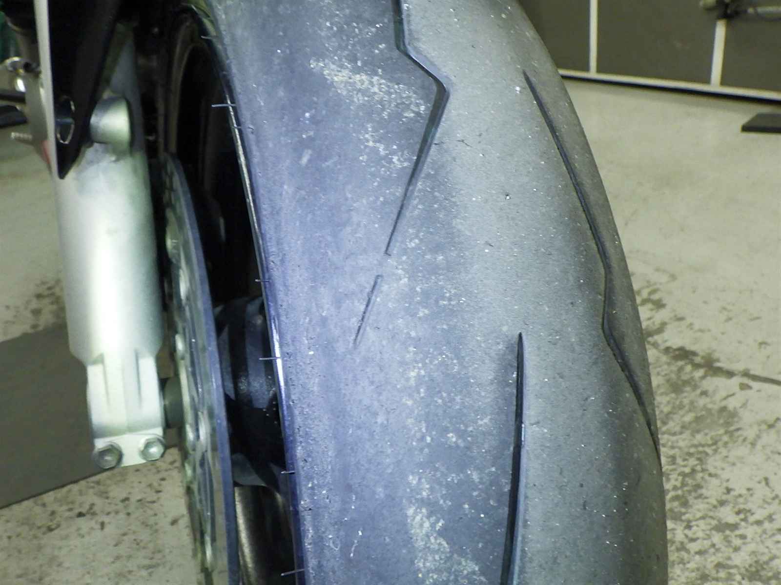 Передняя покрышка: Снижение давления в шине, Трещина