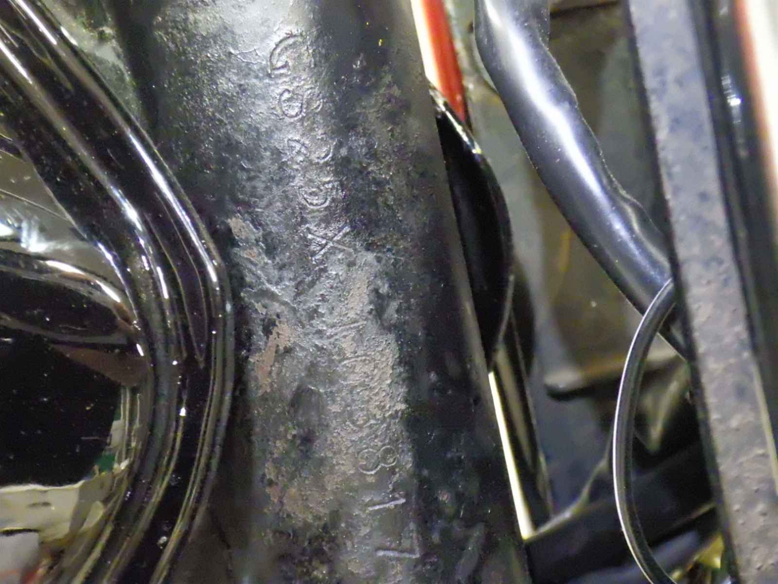 Нижняя труба рамы: Окисление на нижней трубе Уровень 3, Недостаток, Вся краска